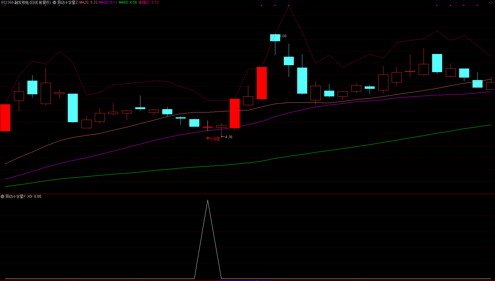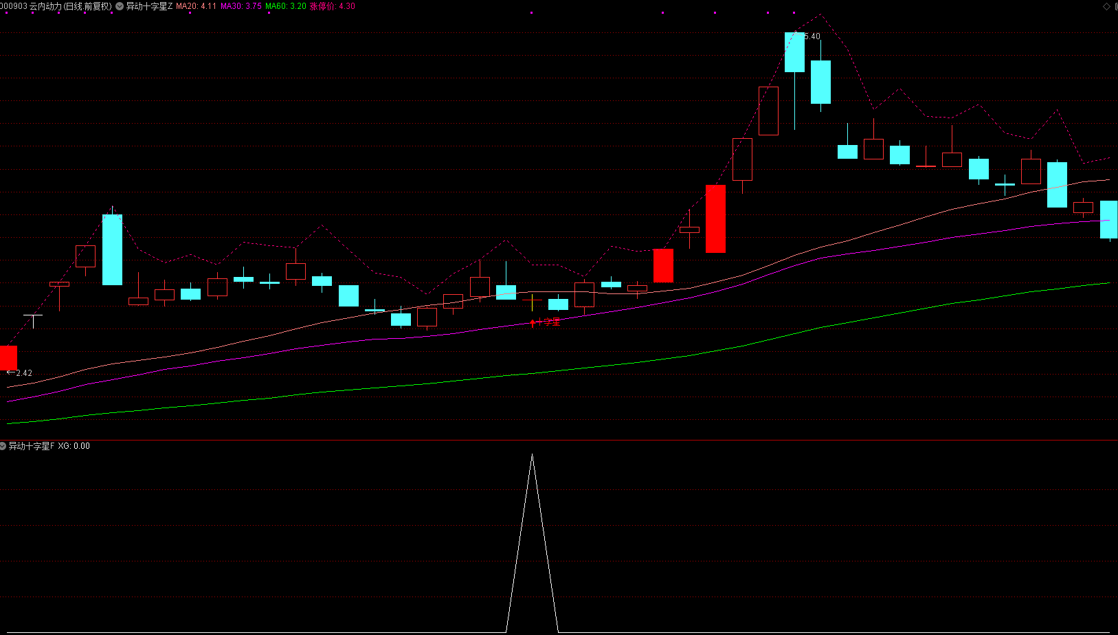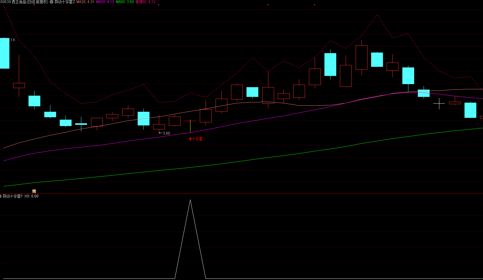 (通达信 【异动十字星】 主副图选股 多空博弈下的十字星走向)