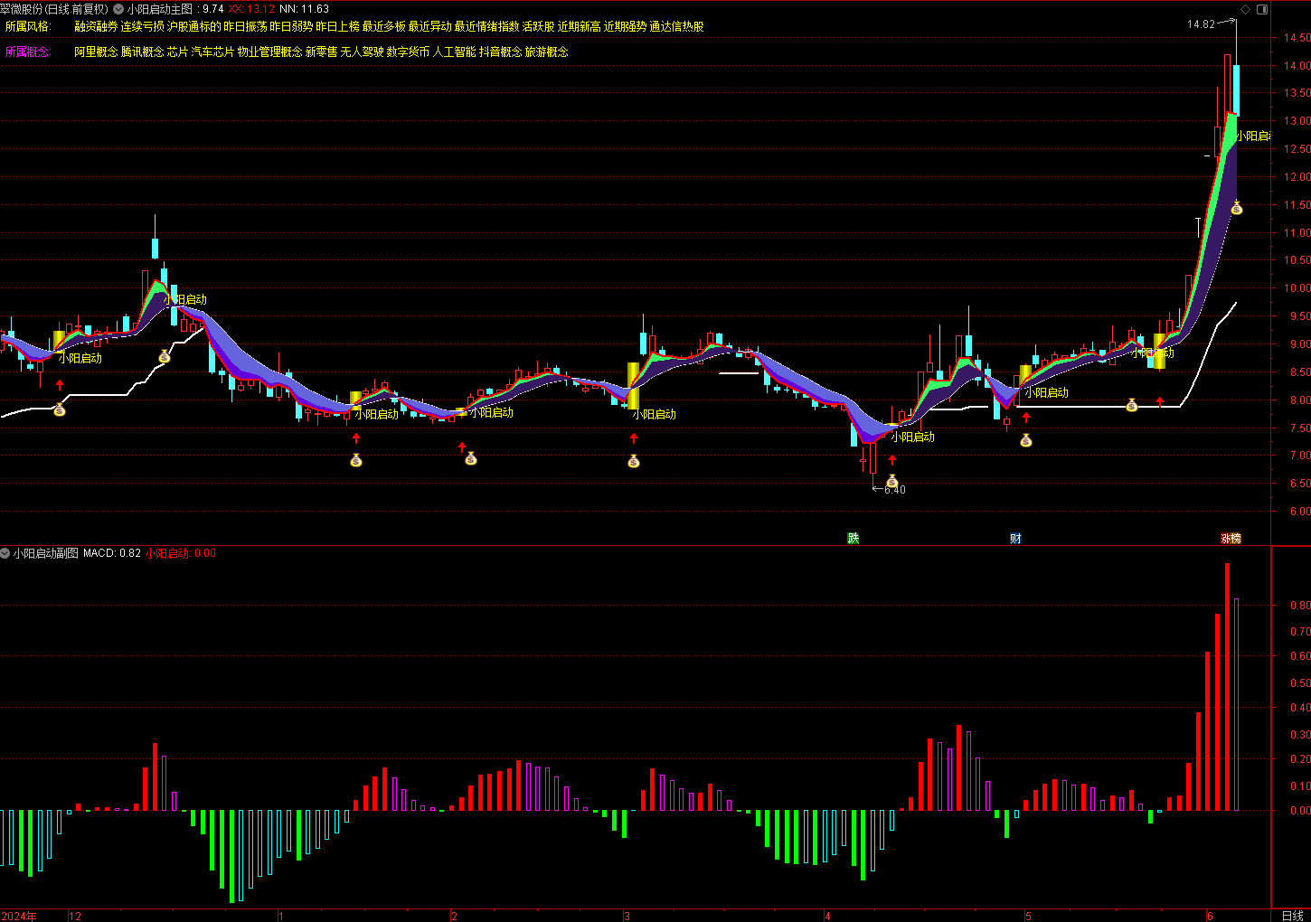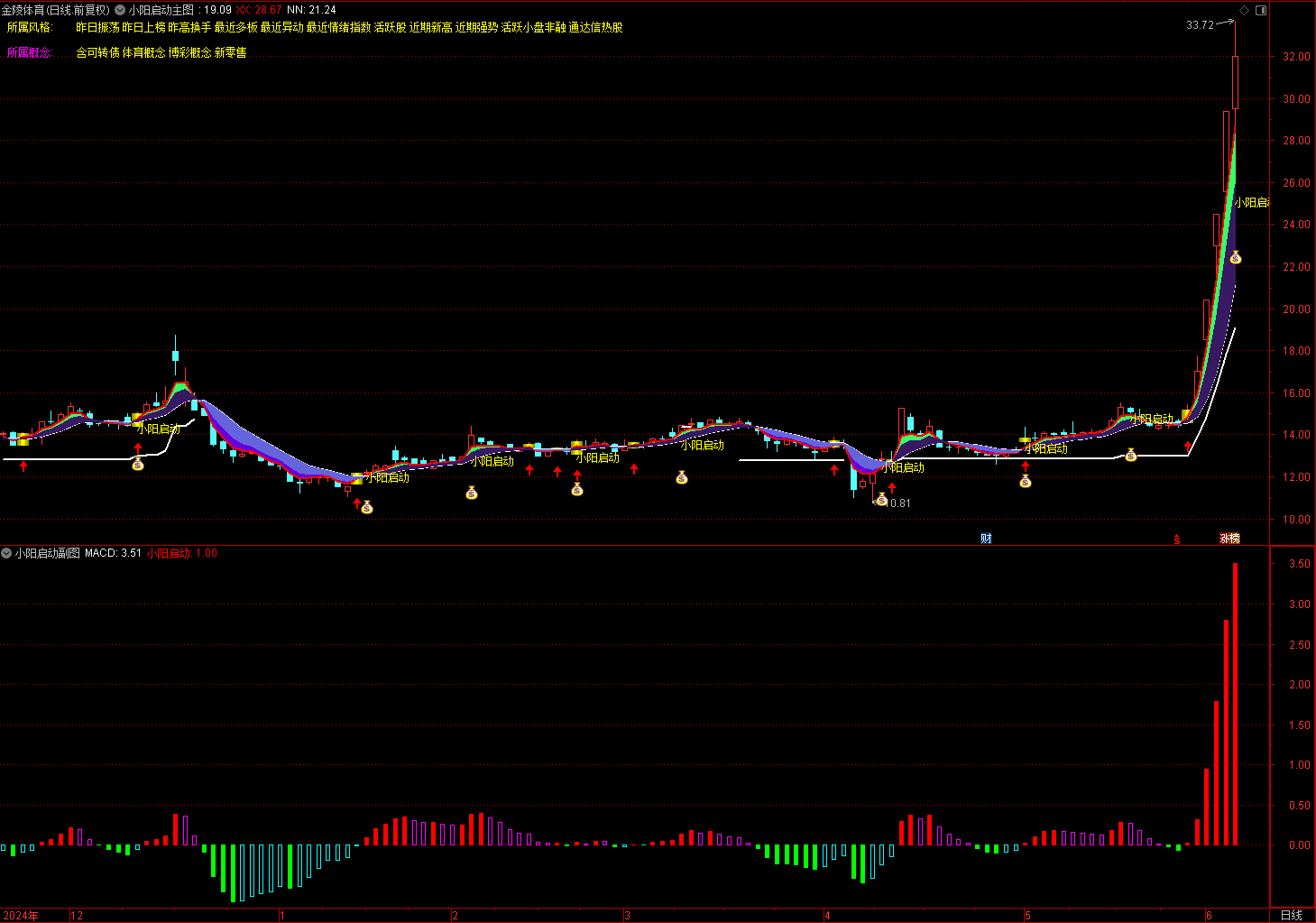 (通达信〖小阳启动〗主副图/选股 适合波段交易 结合EMA金叉与通道突破入场 )