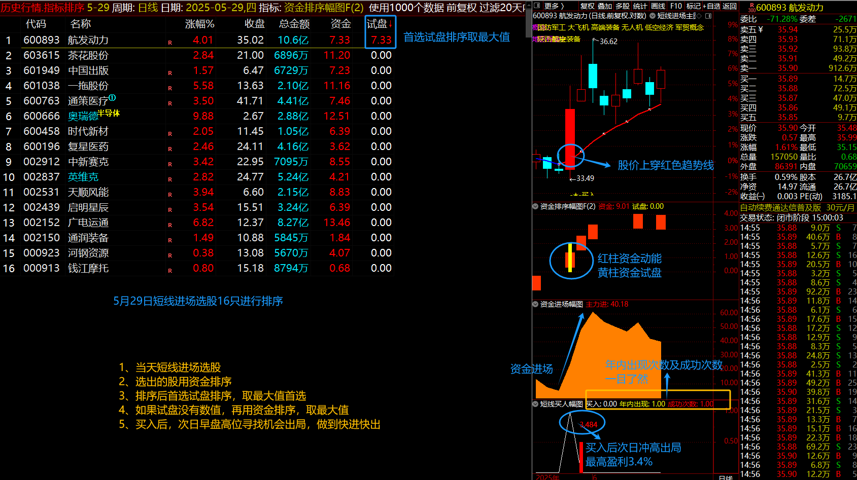 (【短线进场+资金排序】指标短线进场配合资金排序做到超短线快进快出)