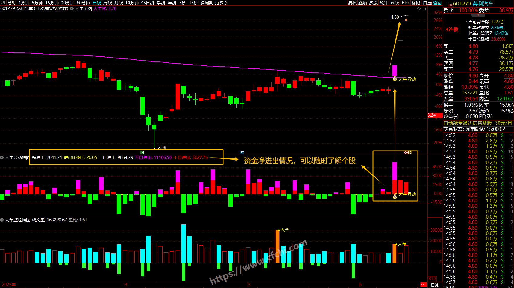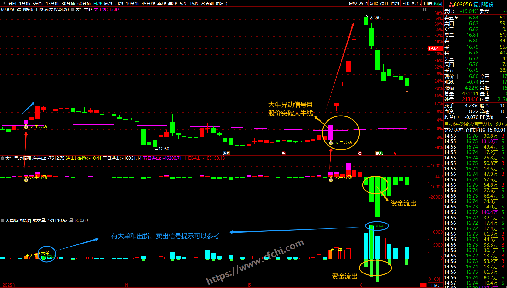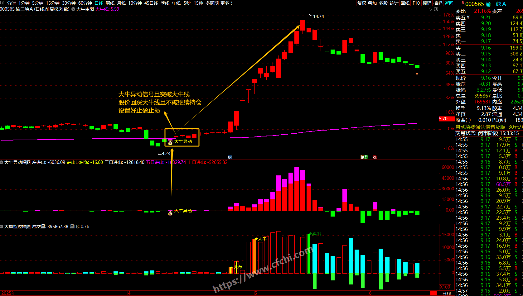 (通达信【大单异动监控】指标大牛异动即将启动 、大单资金监控、不含未来函数)