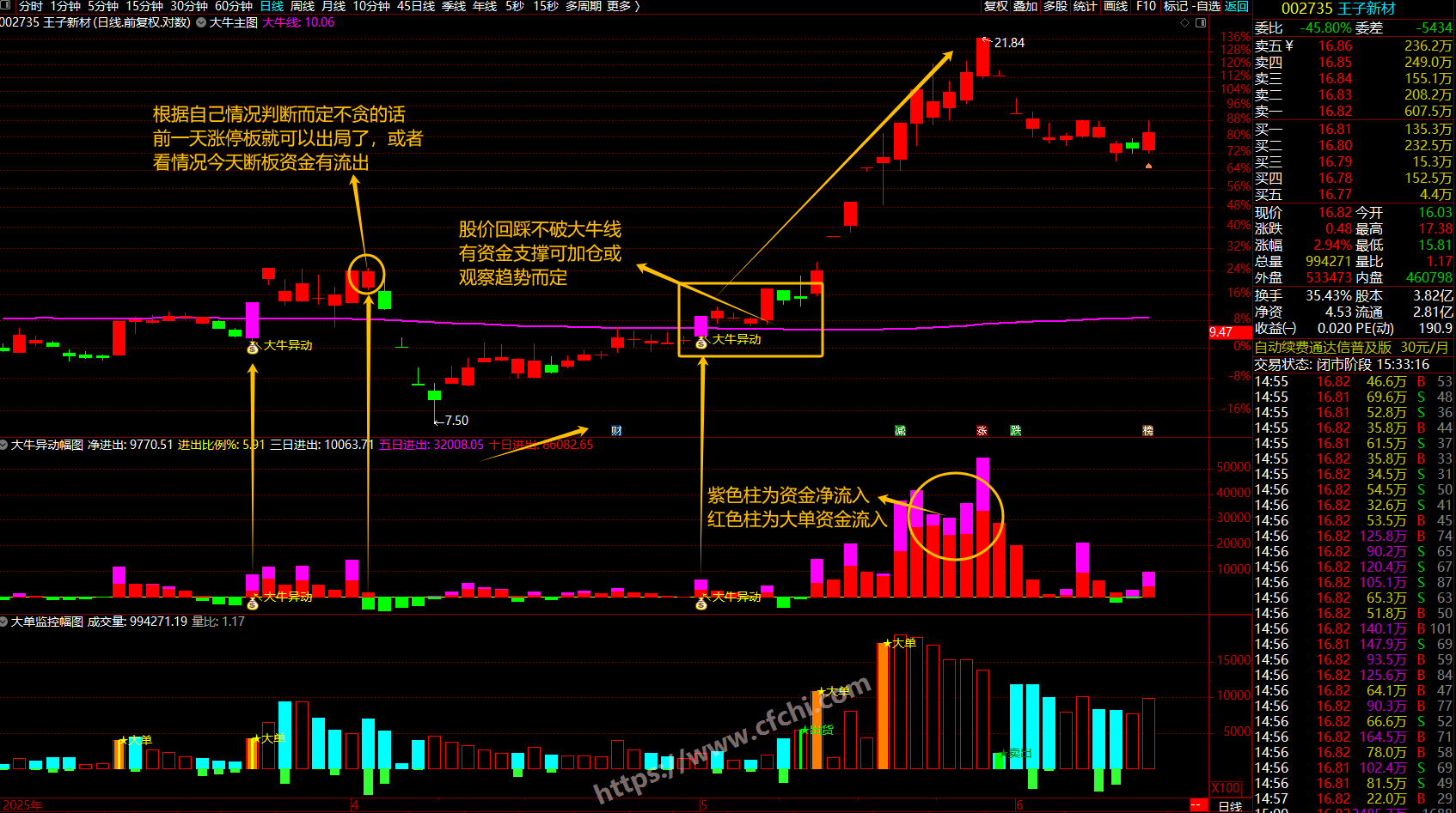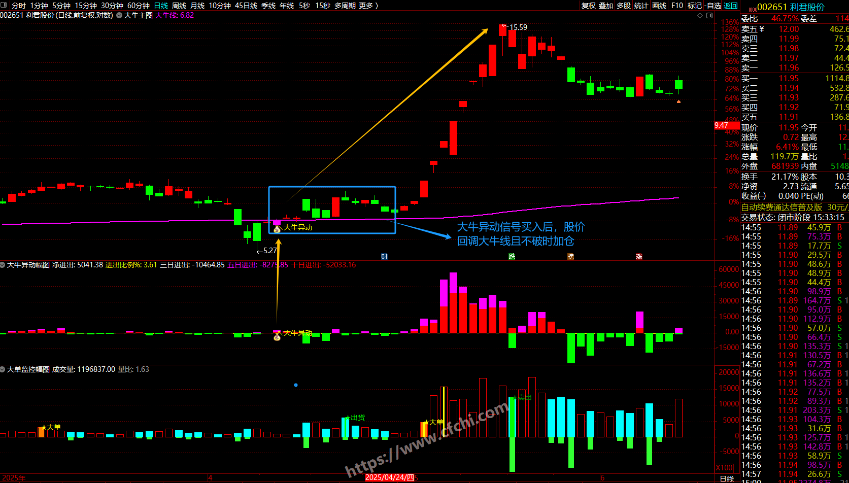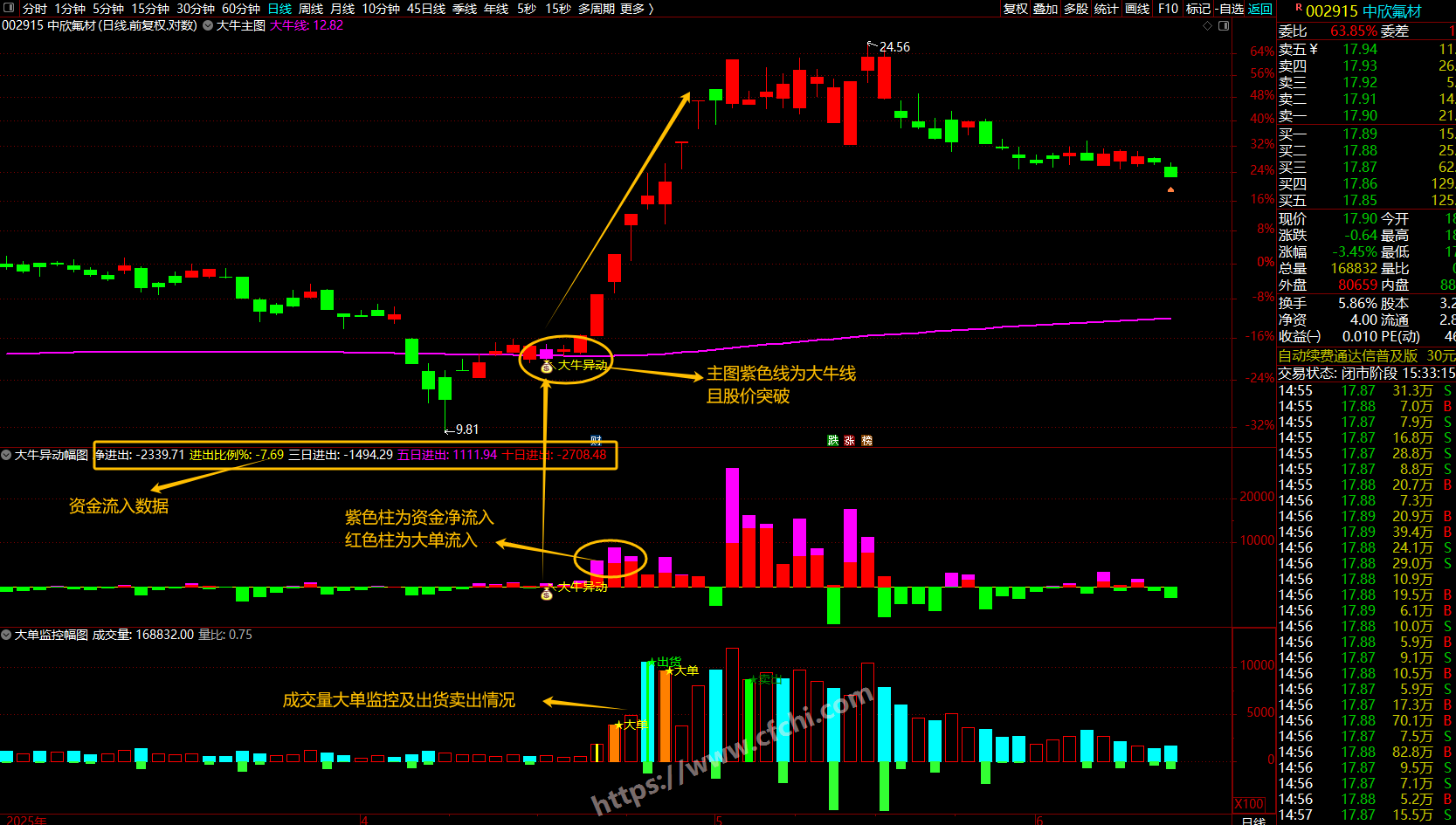 (通达信【大单异动监控】指标大牛异动即将启动 、大单资金监控、不含未来函数)