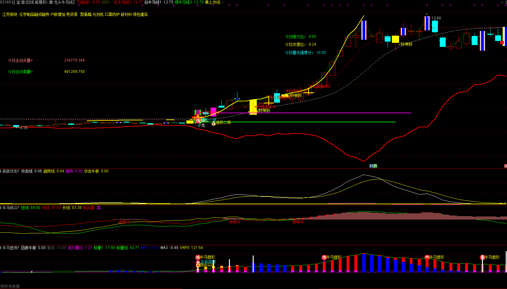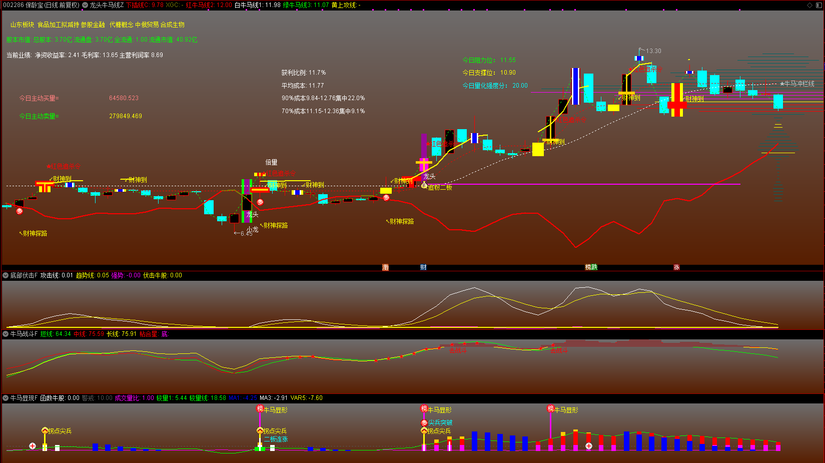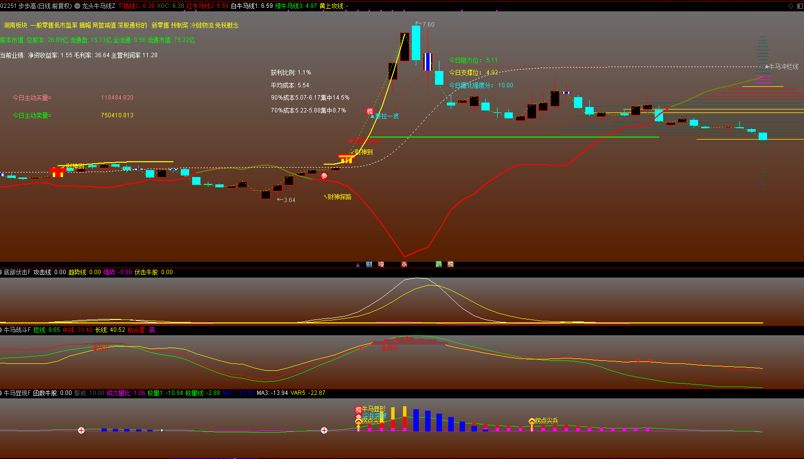 牛马显形副图开仓原则:坚持放量K线上穿主图牛马线买!