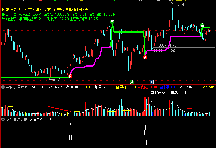 通过对主力资金的分析以及区间内的最低值、最高值的综合关系和时间范围的叠加计算给出变盘临界的买入点与卖出点。多空信号一出,近期的大趋势非常明朗,不会轻易改变。
