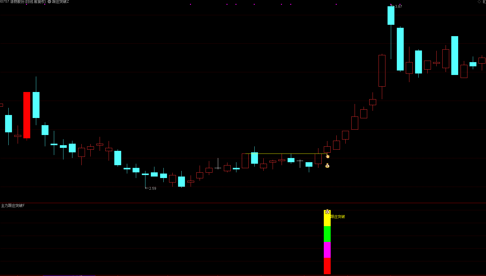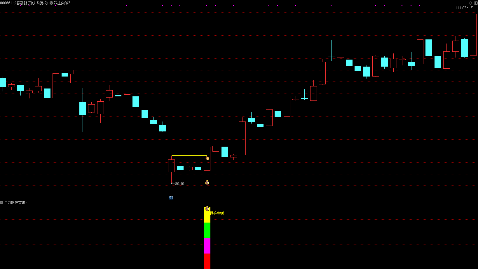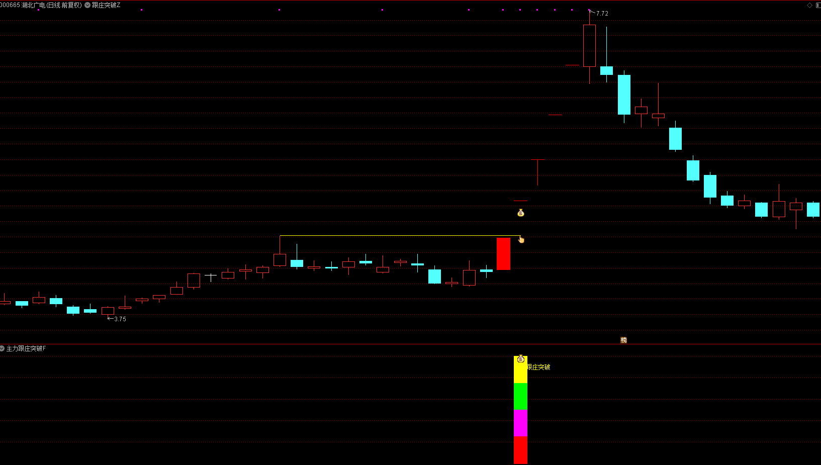 (通达信 【跟庄突破】主副图选股 横盘突破捕捉妖股起爆点 )
