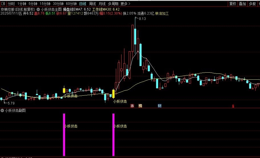 (通达信【小妖伏击】主副图选股指标,主抓起涨点 盘后信号稳定 源码)