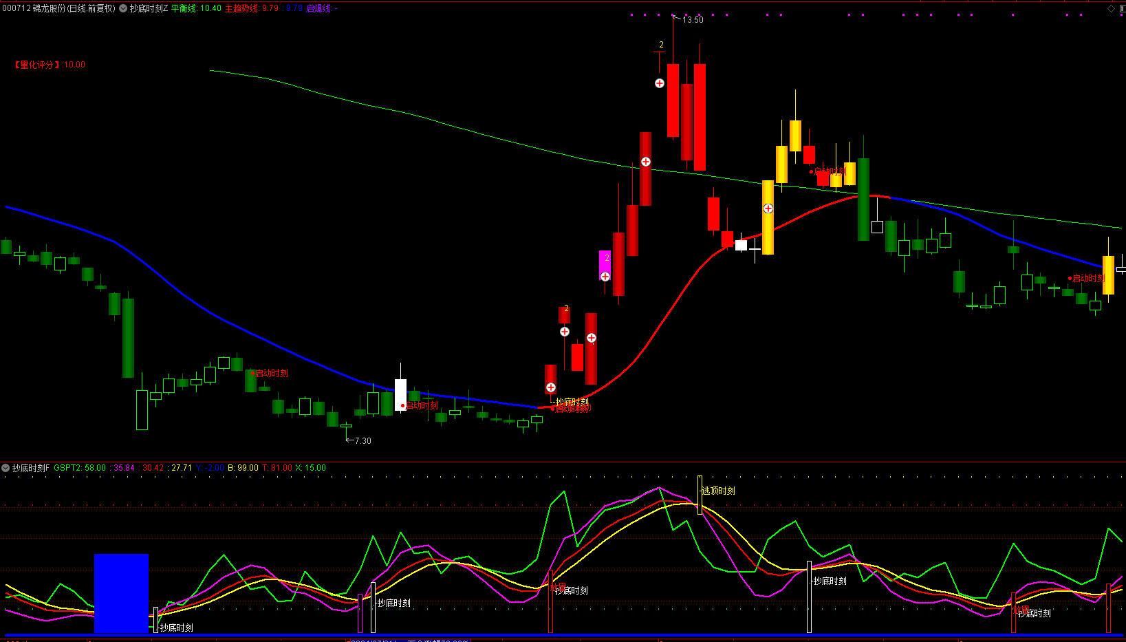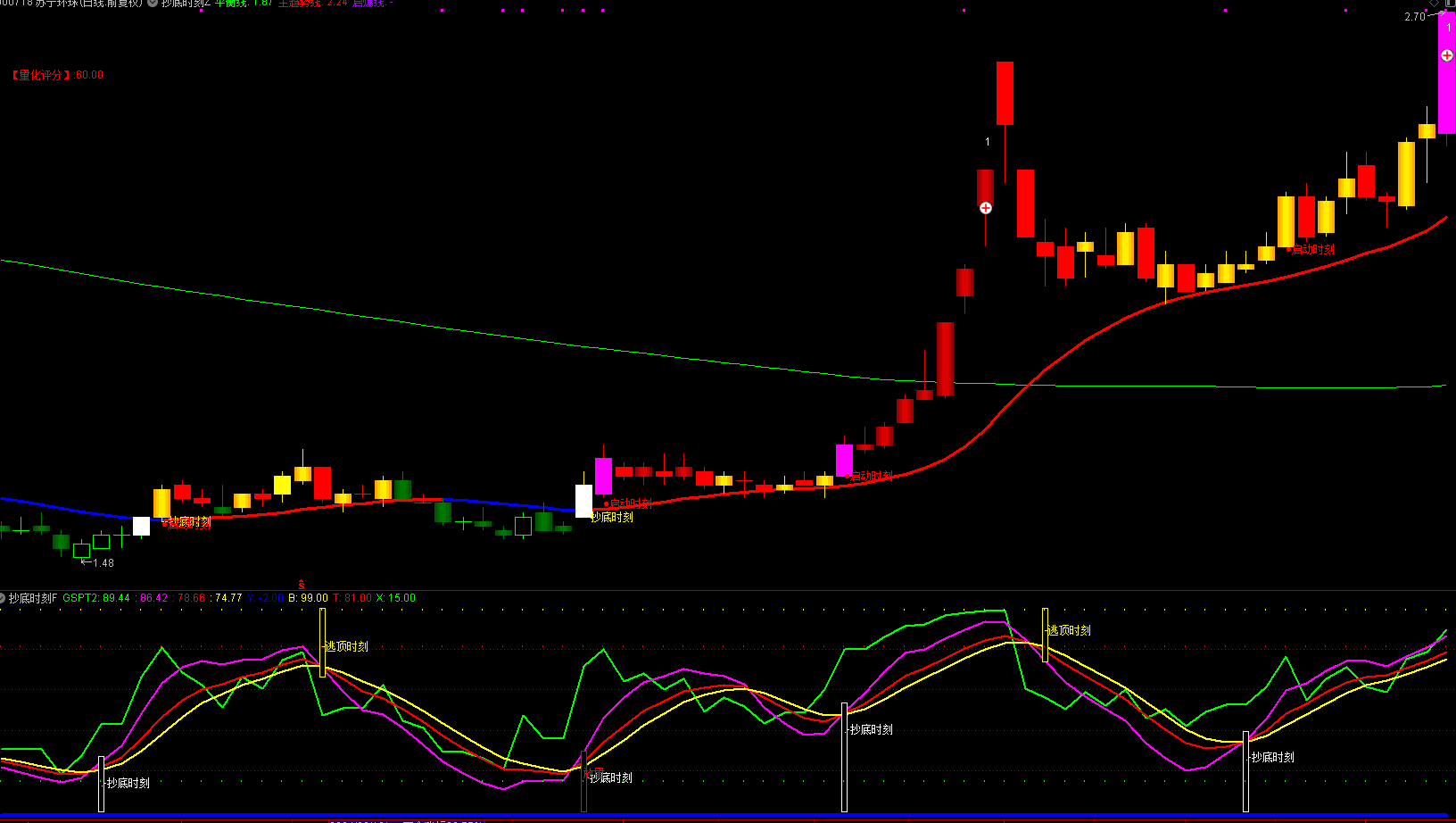 当主副图同时出现抄底时刻信号时,意味着市场短期底部可能形成,此时投资者可考虑适量建仓,把握短线反弹行情。