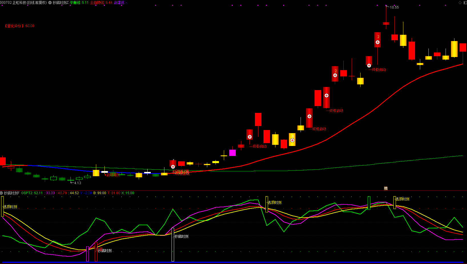 启动时刻信号表明行情开始启动,有进一步上涨的动力;