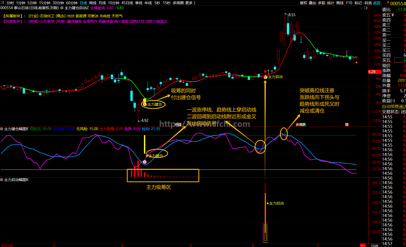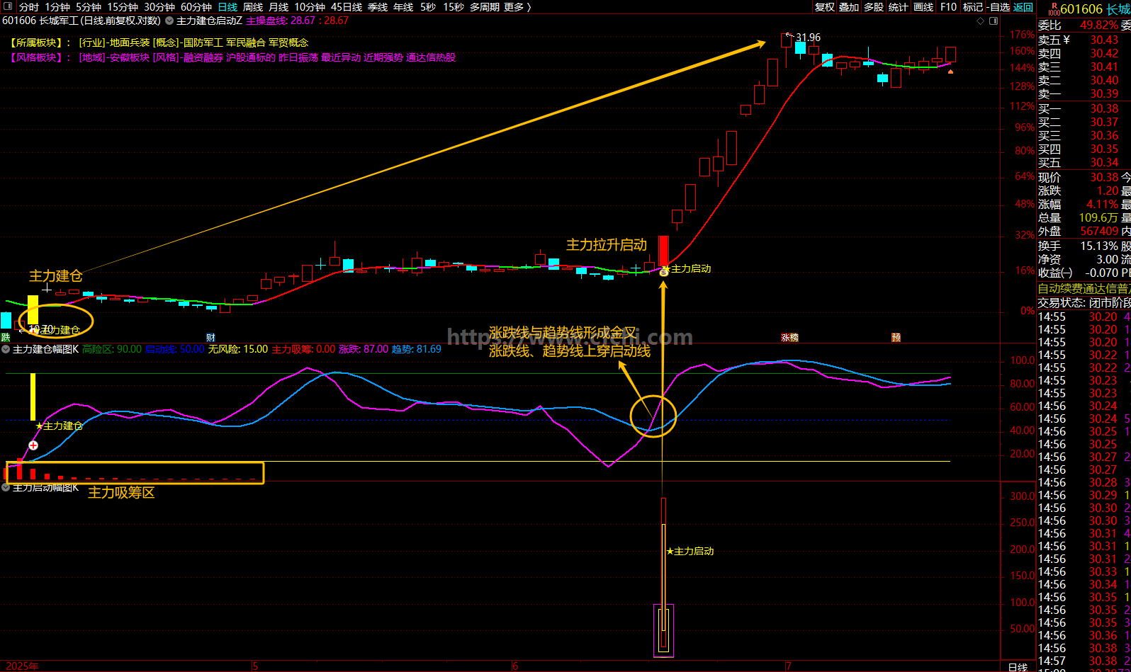 (通达信【主力操盘】指标1主图2幅图2选股、主力吸筹建仓启动抓主升浪)