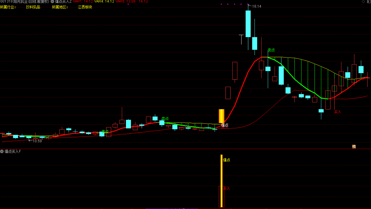 买入: K线下方文字 +支撑带确认+价格企稳 =逢低布局