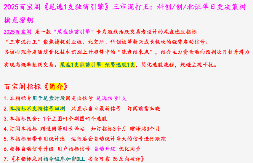 (2025百宝阁《尾选1支独苗引擎》三市混打王:科创/创/北证单日更决策树 擒龙密钥 本文为理想论坛)