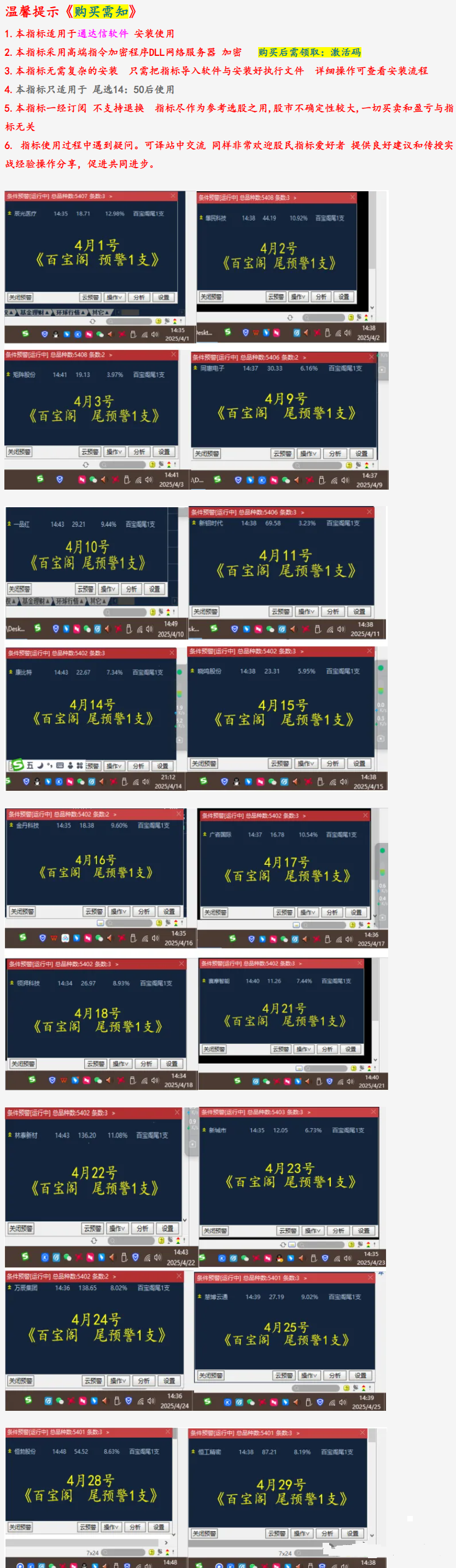 郑重声明:股市具有不确定性,个股走势是无法预测的。公式软件描述中的案例截图仅代表过去,仅供参考学习研究之用,不构成投资建议或未来保证,也并不能代表未来,依此操作,责任自负。股市有风险,入市需谨慎。