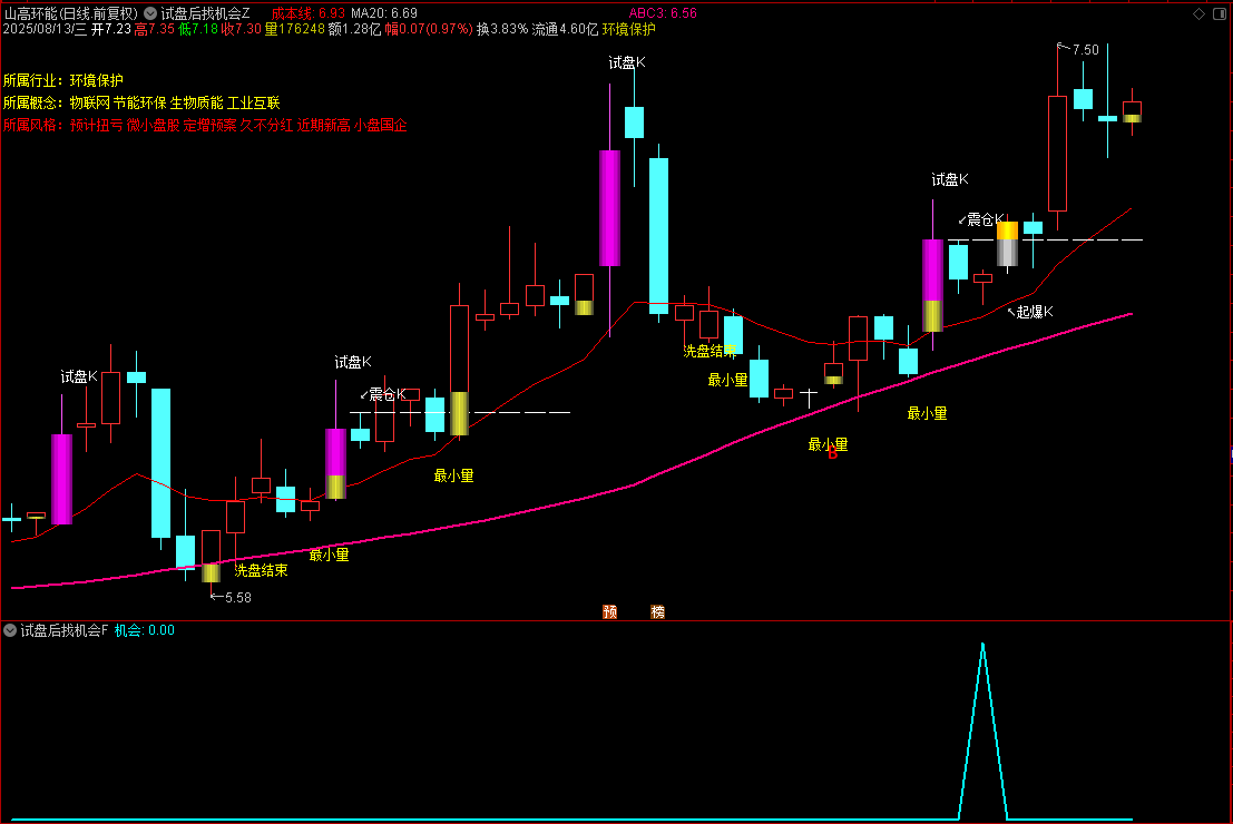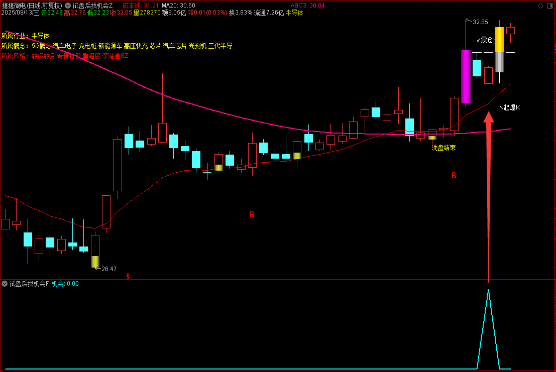 (【试盘后找机会】通达信试盘后找机会主副图选股指标,源码)