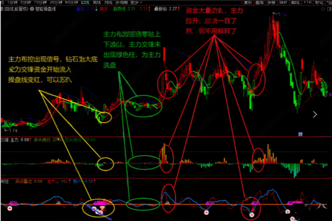 此套指标经过验证,主力各种动向清楚明白,个股上涨的最根本因素是资金,对主力资金的监控,可以洞察主力到底在干什么,什么时候要拉台股价,绿柱和红黄柱分别代表资金流出和流入,长短代表流出流入力度。