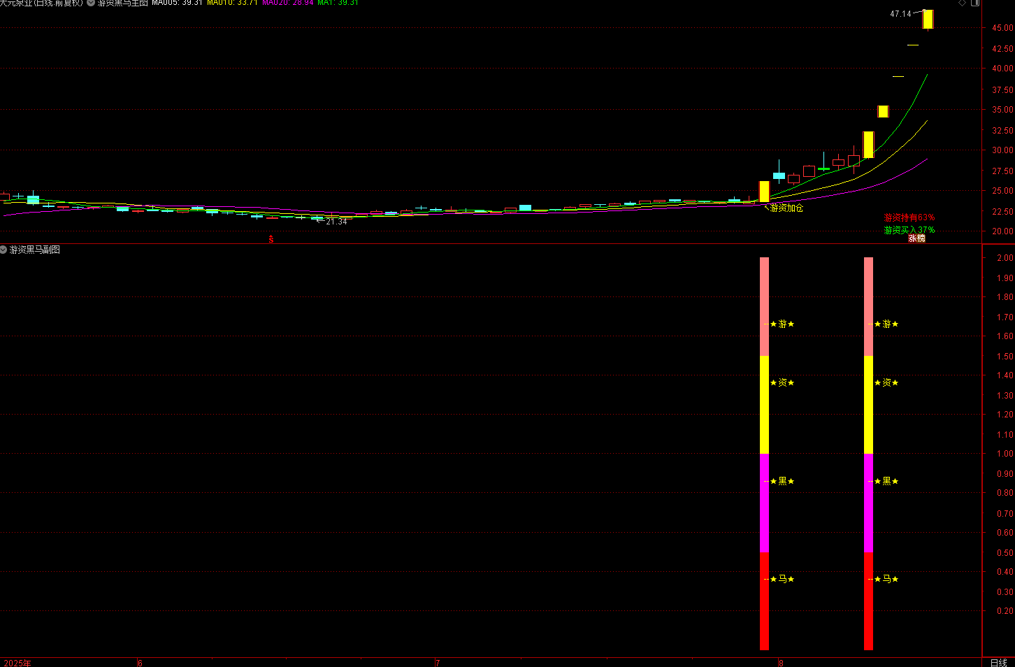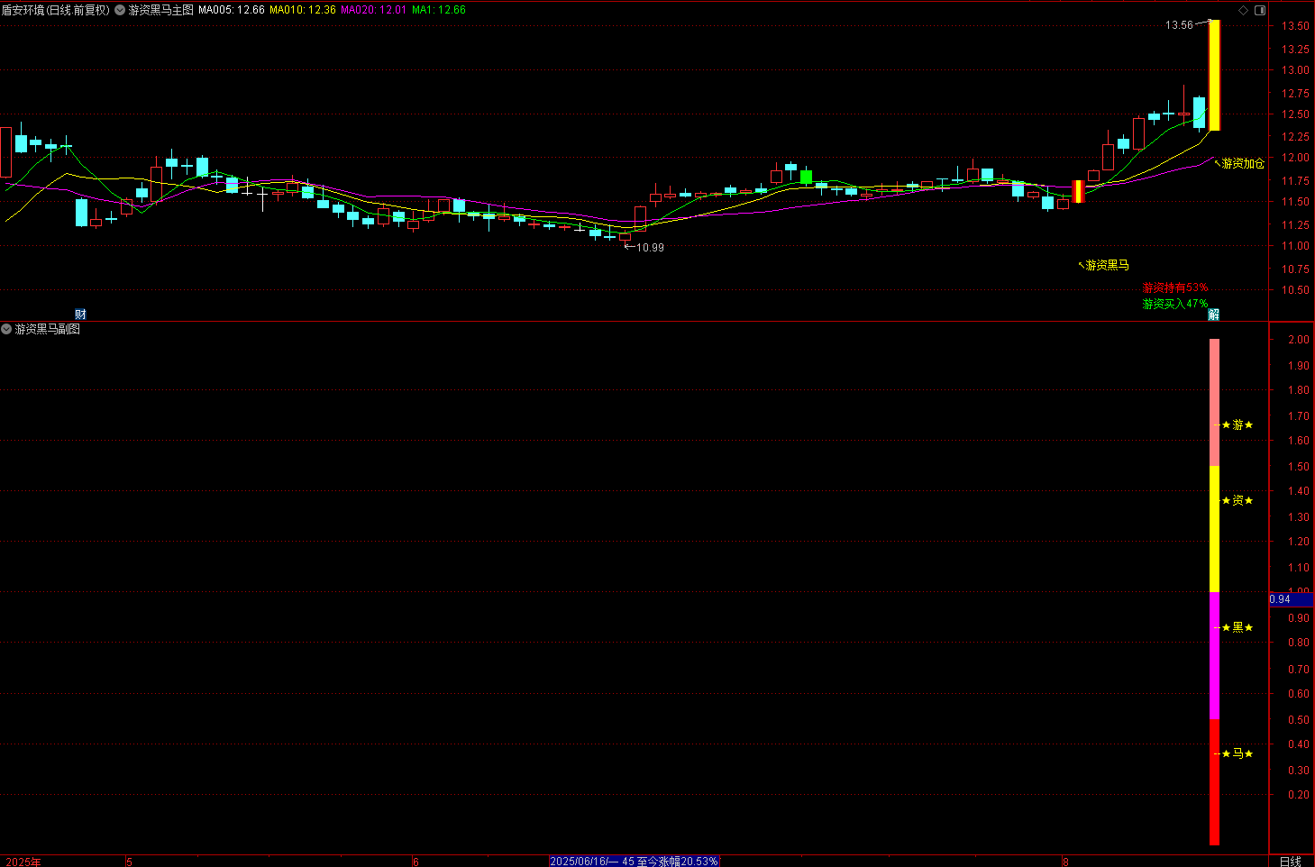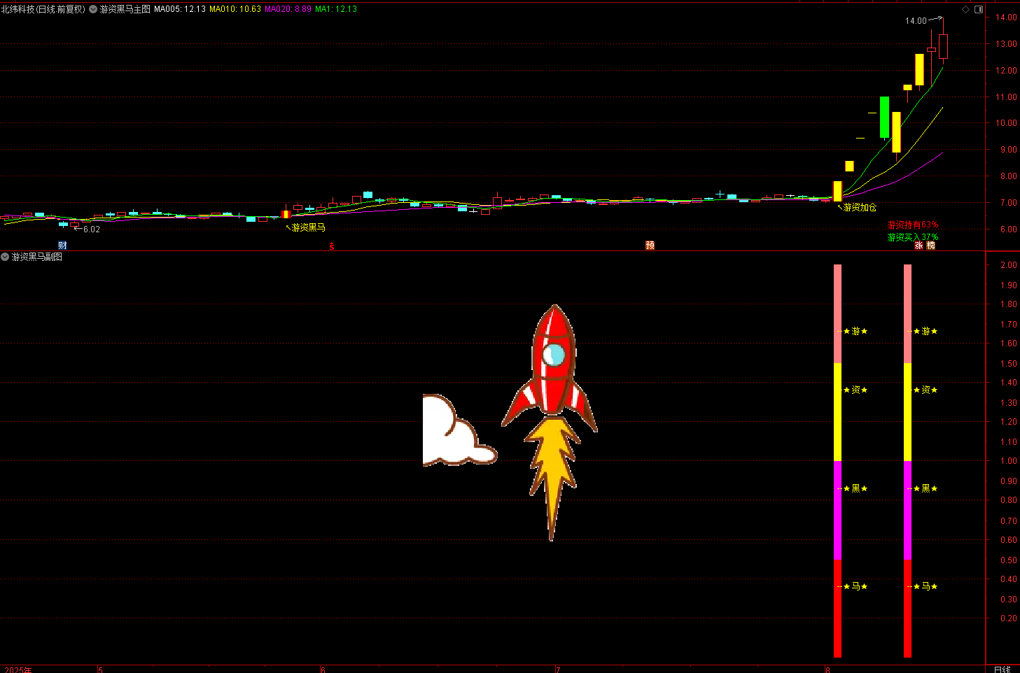 (通达信〖游资黑马〗主副图/选股 捕捉短线强势股(游资黑马)信号 )