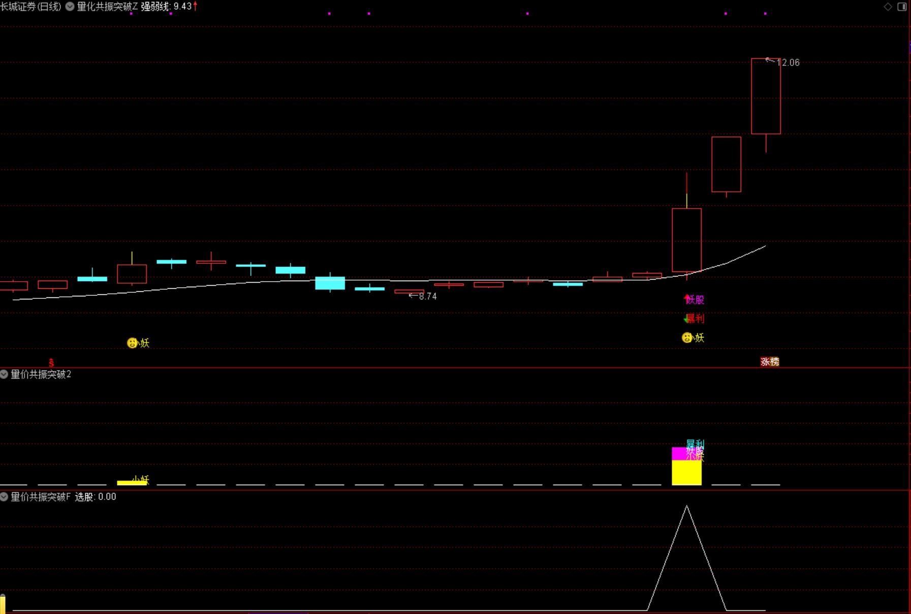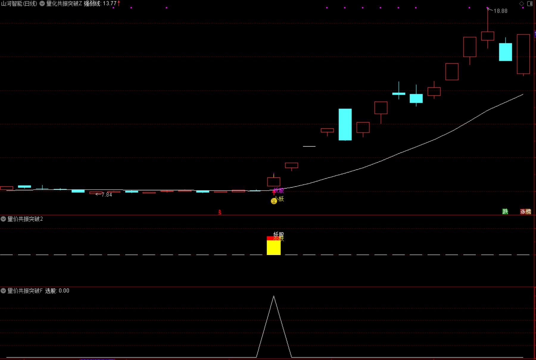 (通达信【量价共振突破】主副图/选股指标 通过量价共振等多维度条件识别强势思路手机电脑通用)
