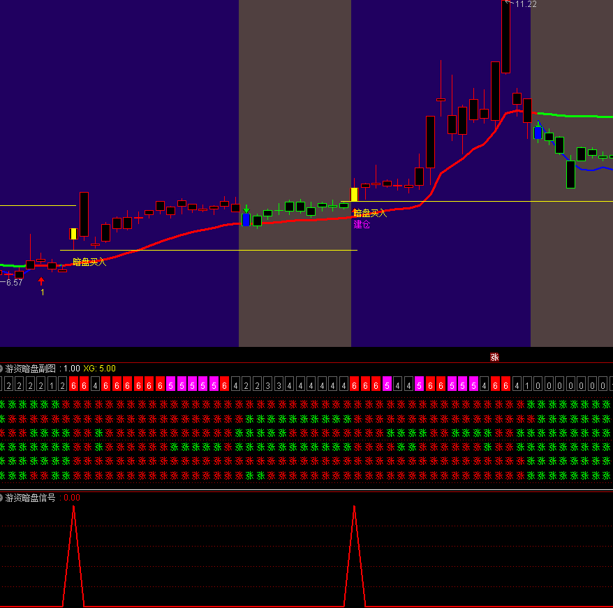 (通达信【游资暗盘买入】主副图选股 很牛的暗盘资金建仓买入看盘指标)