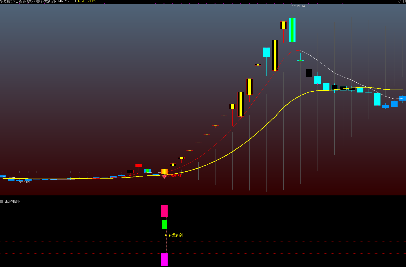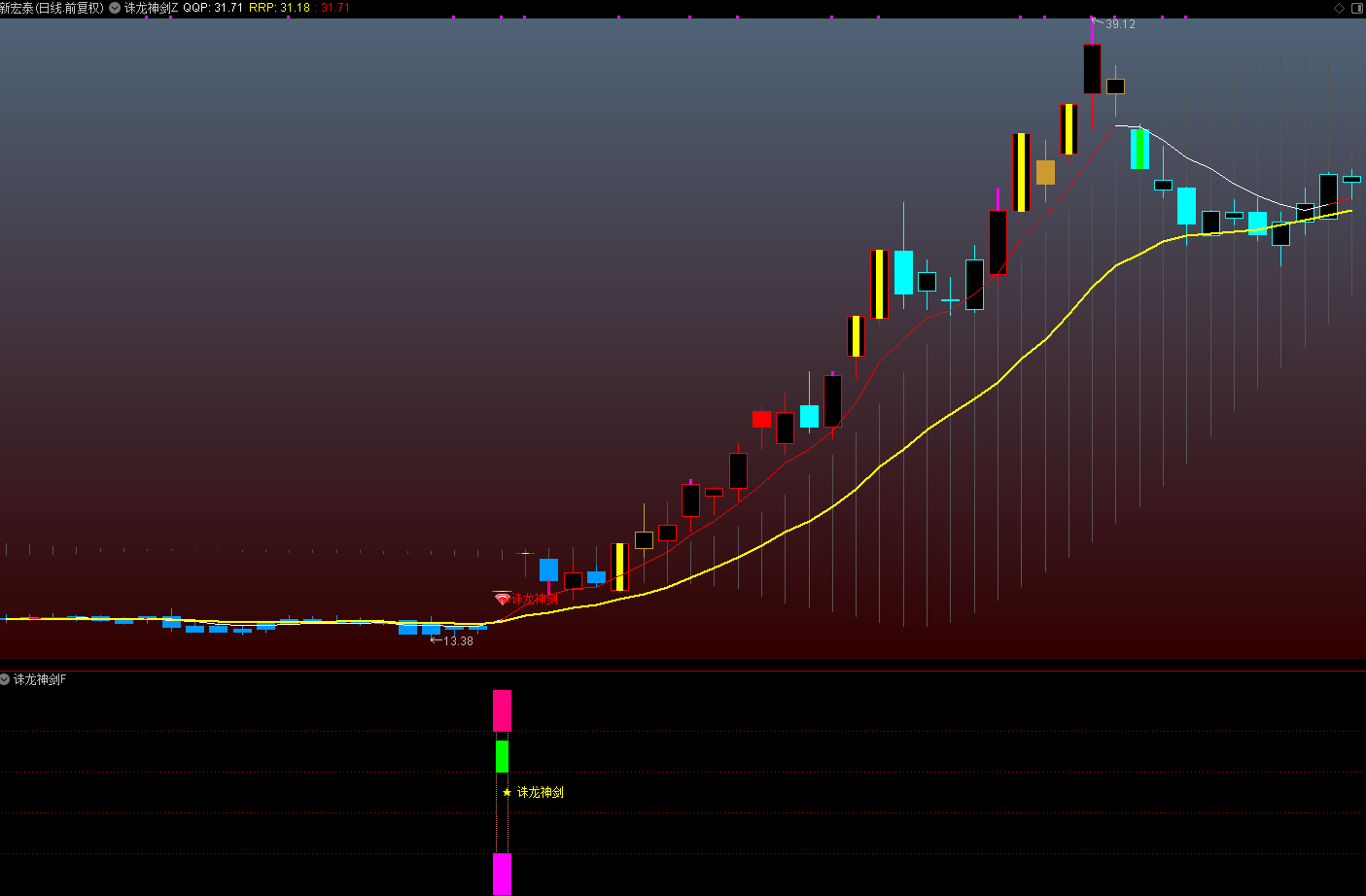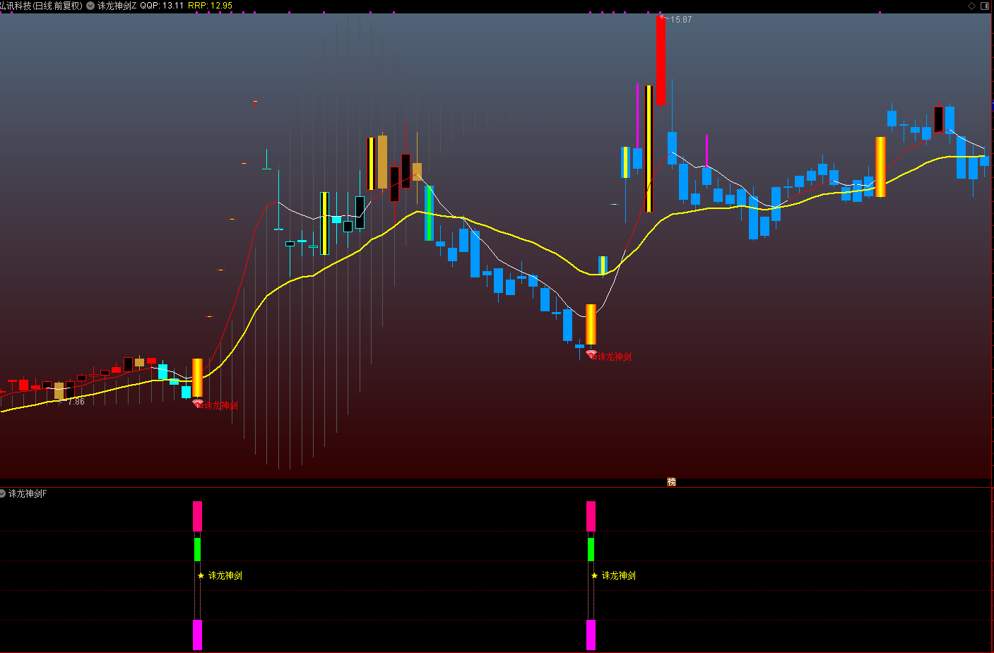 标记:在K线下方显示图标(☆)和文字提示"☆诛龙神剑"。