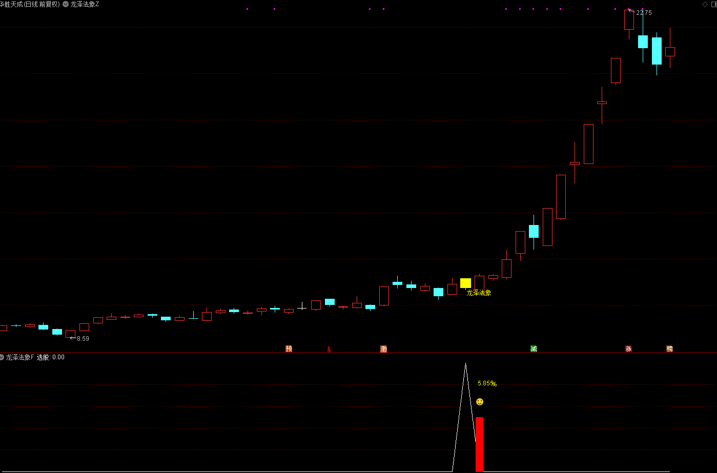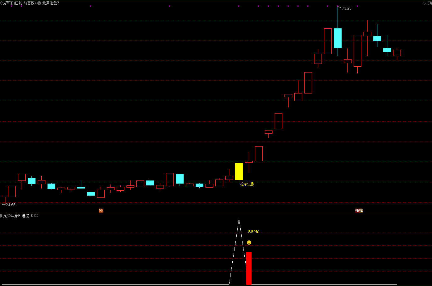 (通达信【龙泽法象】主副图选股 回马枪反转尾盘T+1思路,无未来函数,手机电脑通用)