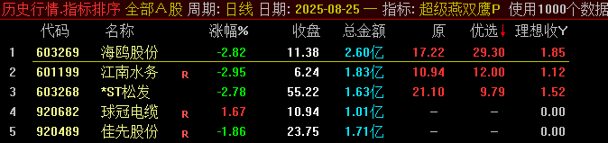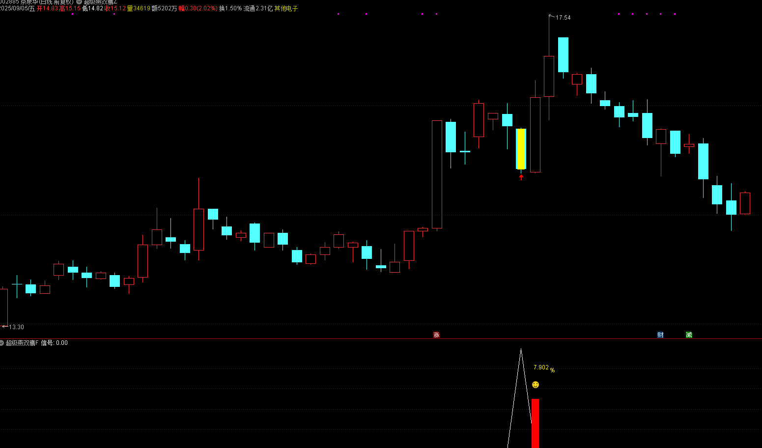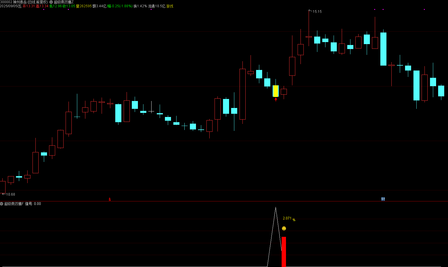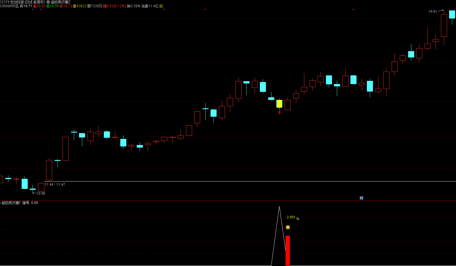 全套指标:1个主图、1个副图、1个选股,1电脑排序,1手机评分(原评分大于10以上,做优选第一),支持手机和电脑端使用。原燕双鹰优化版,优化后加入了换手率(换手率:它代表的是人气度,有人气的地方就有米有行情!),加入了优选评分(更加直观查看信号)。