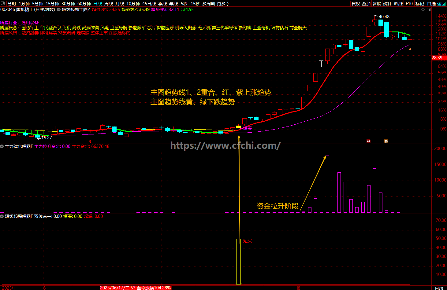 (通达信【短线起爆】指标1主图2幅图2选股、在上涨趋势中发掘强势股)