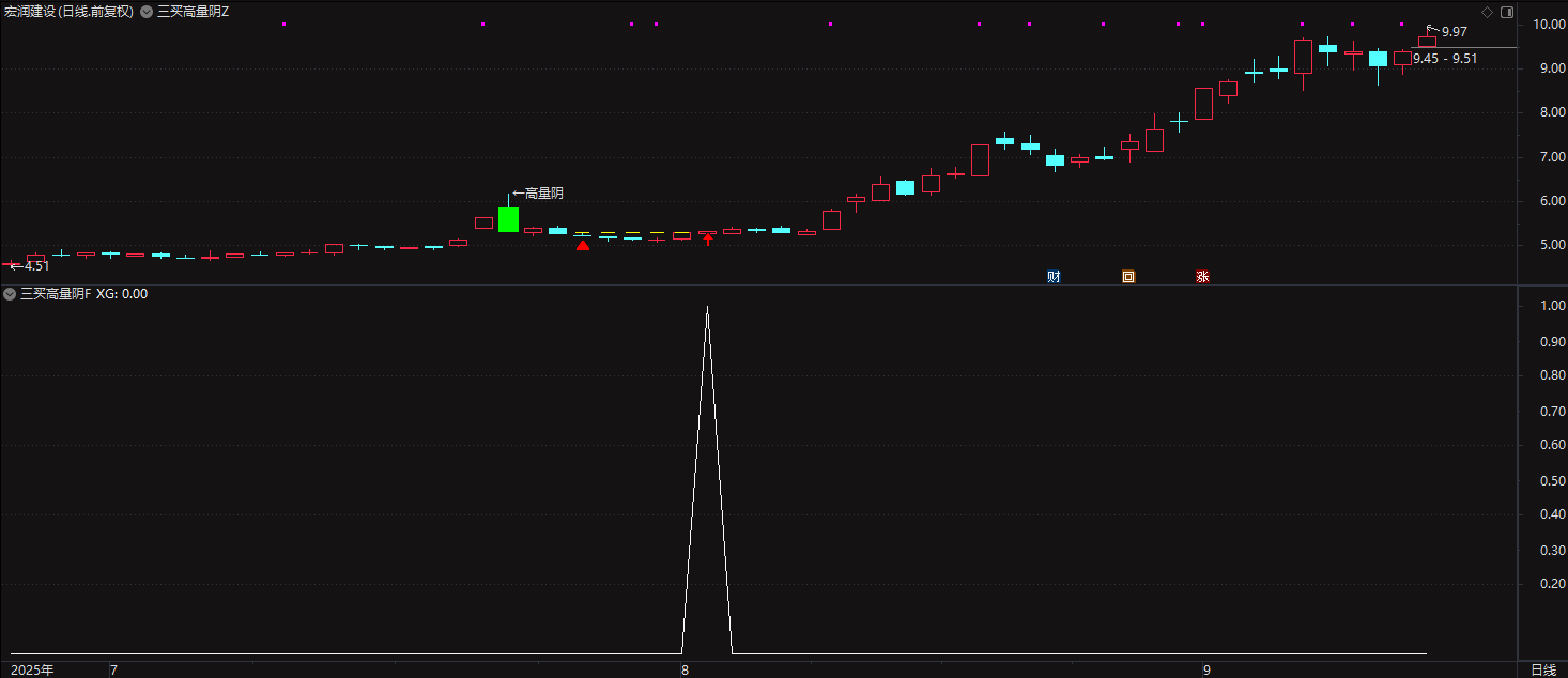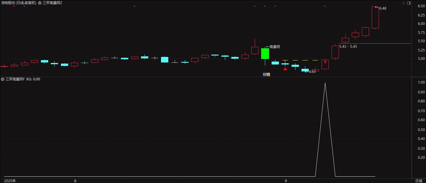 (通达信日进斗金之〖高量阴三买战法〗高量阴线后洗盘突破信号一抓就中)