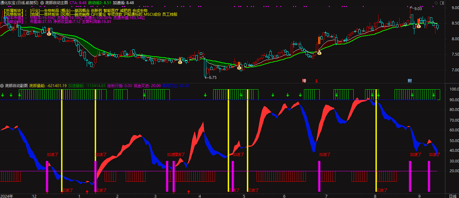 (通达信〖底部启动〗主副图/选股 右侧抄底类指标 )
