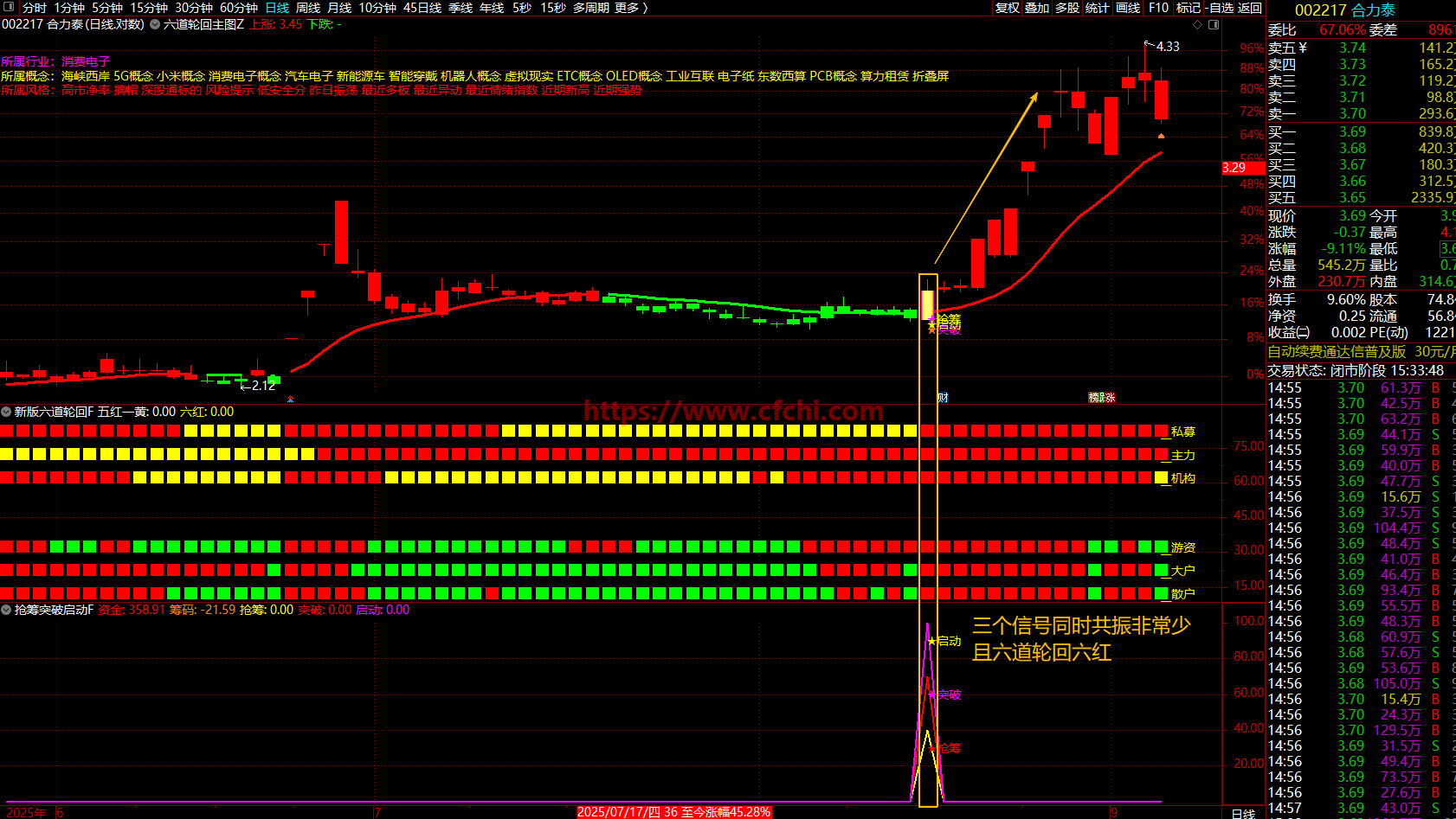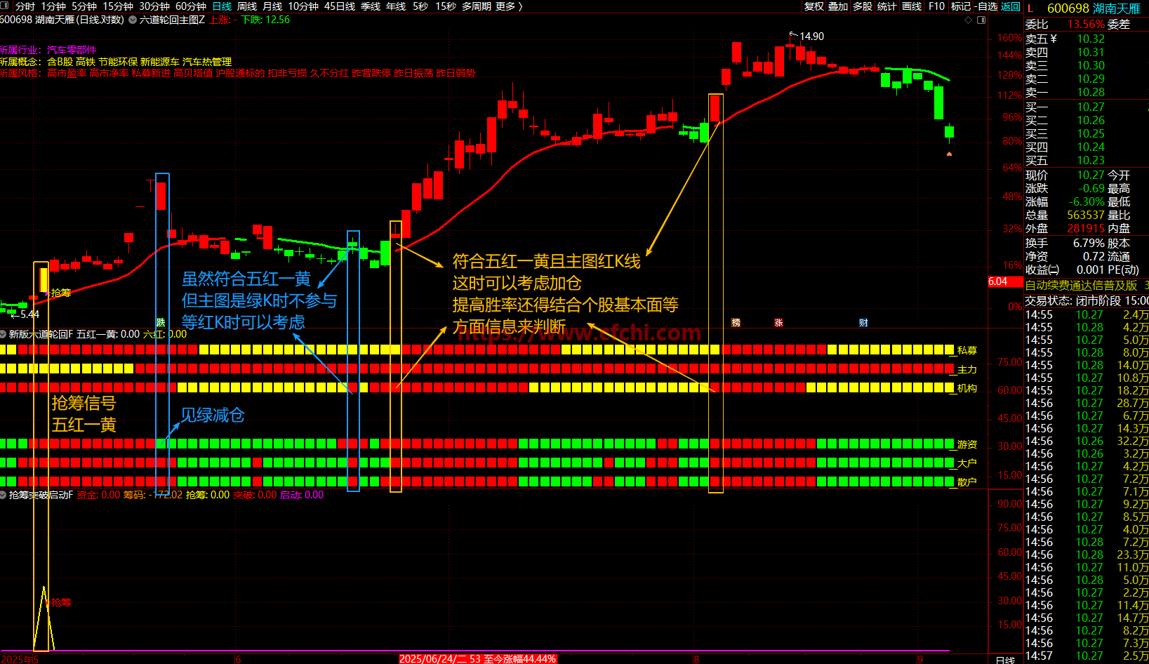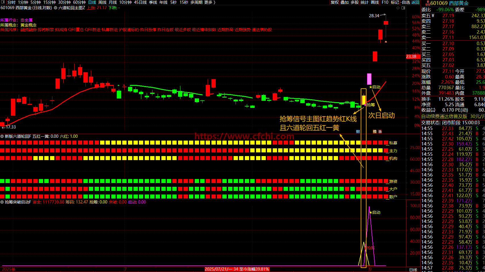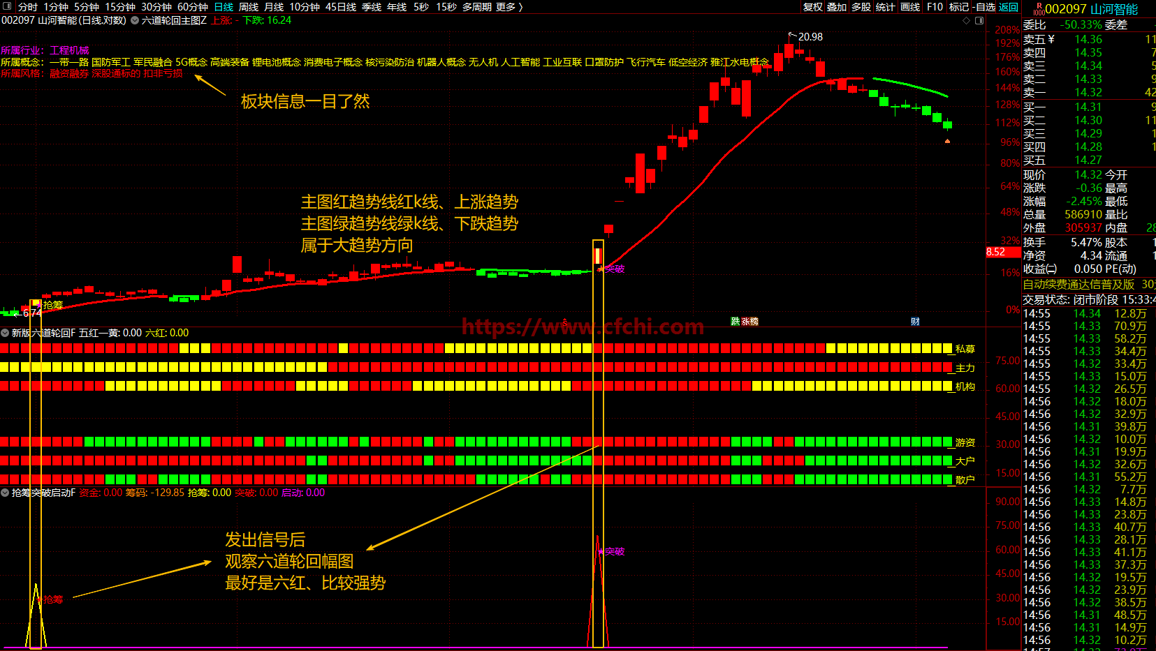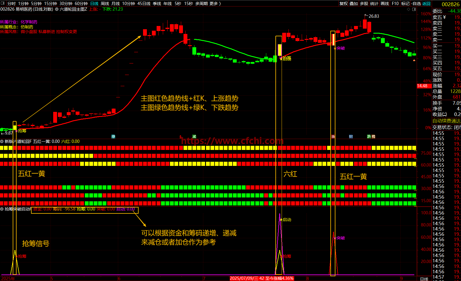红黄绿三个颜色标注,配合抢筹突破启动幅图和选股指标一块使用,胜率还会提高。