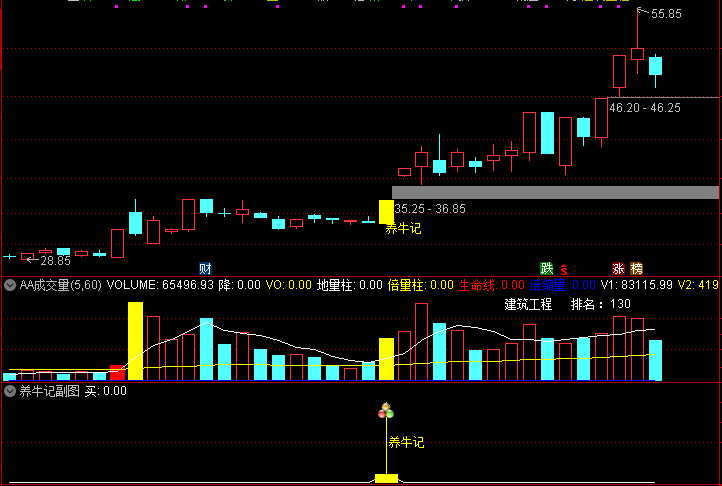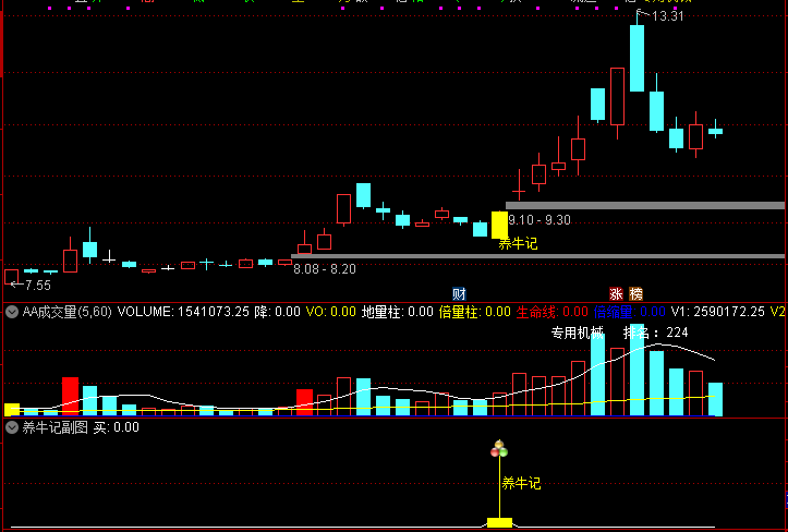 (通达信 养牛记 主图 副图 选股 锁定主力建仓位置 追踪主力 养牛成牛记 )