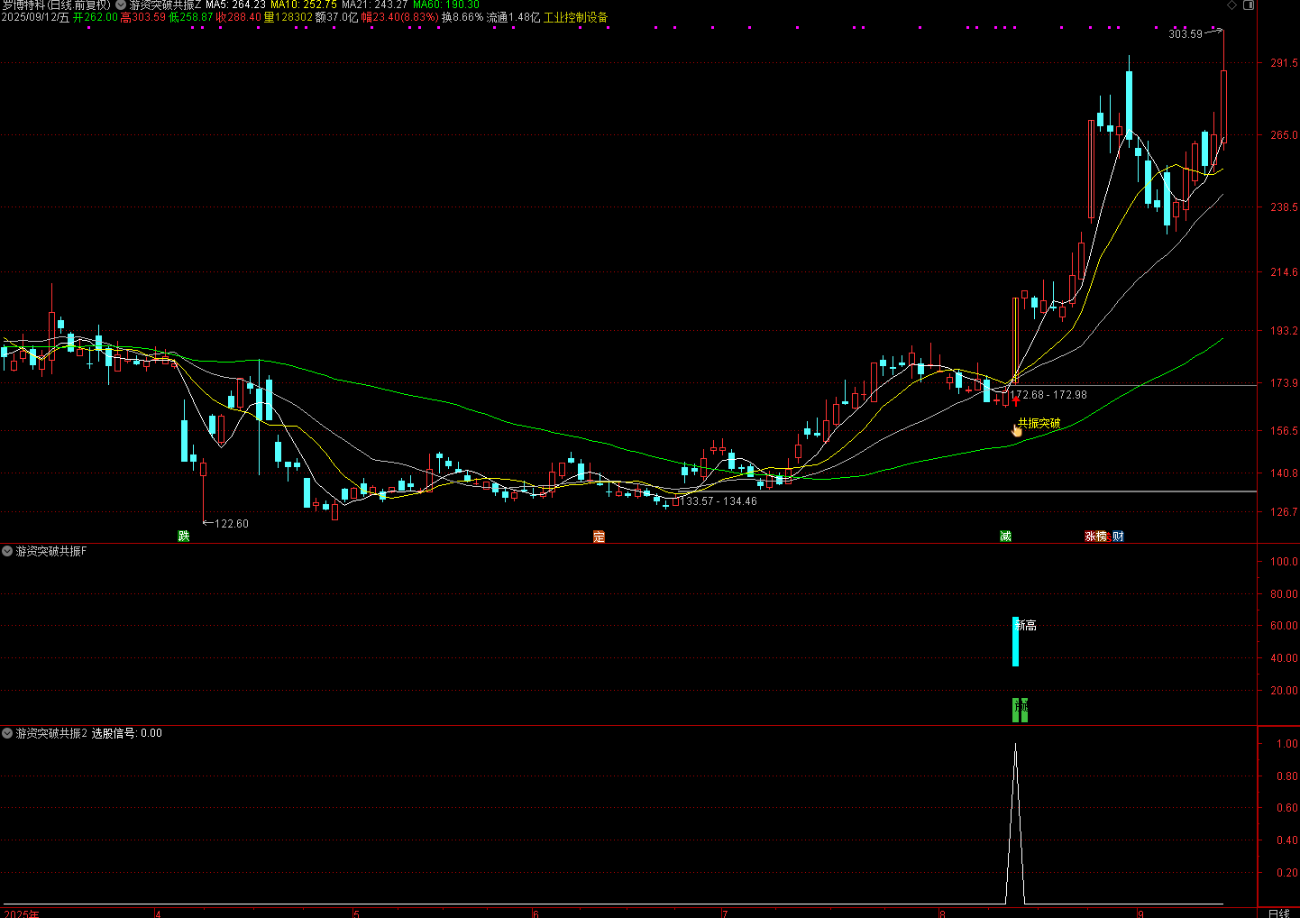 核心功能:识别"伏击"、"创新高"、"共振"三种关键机会,配合均线和成交量验证。