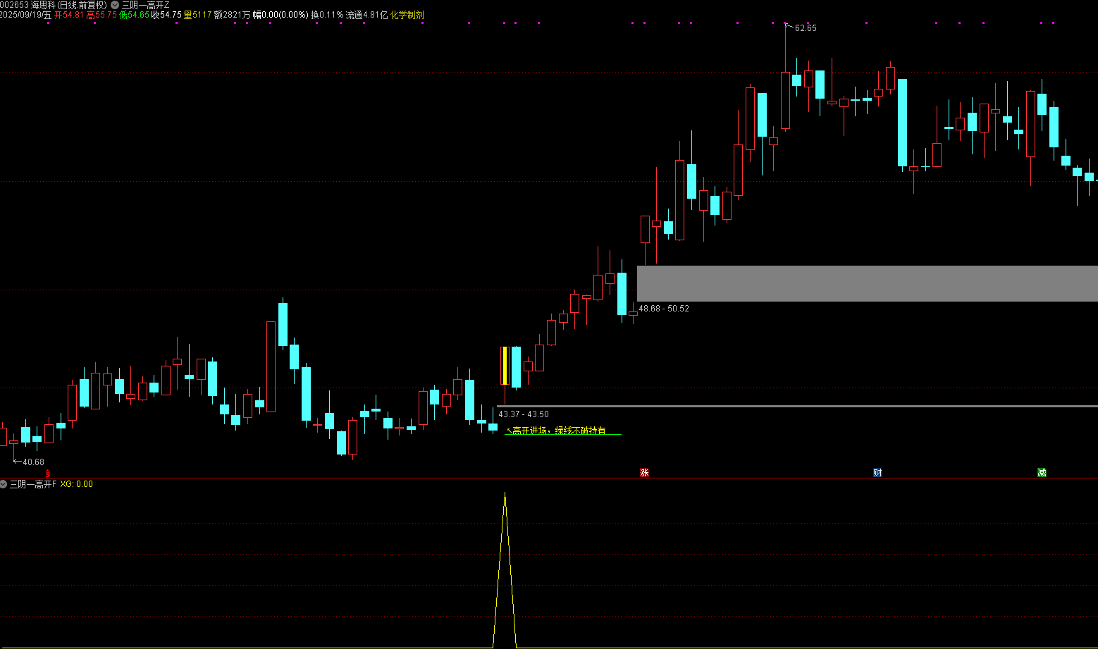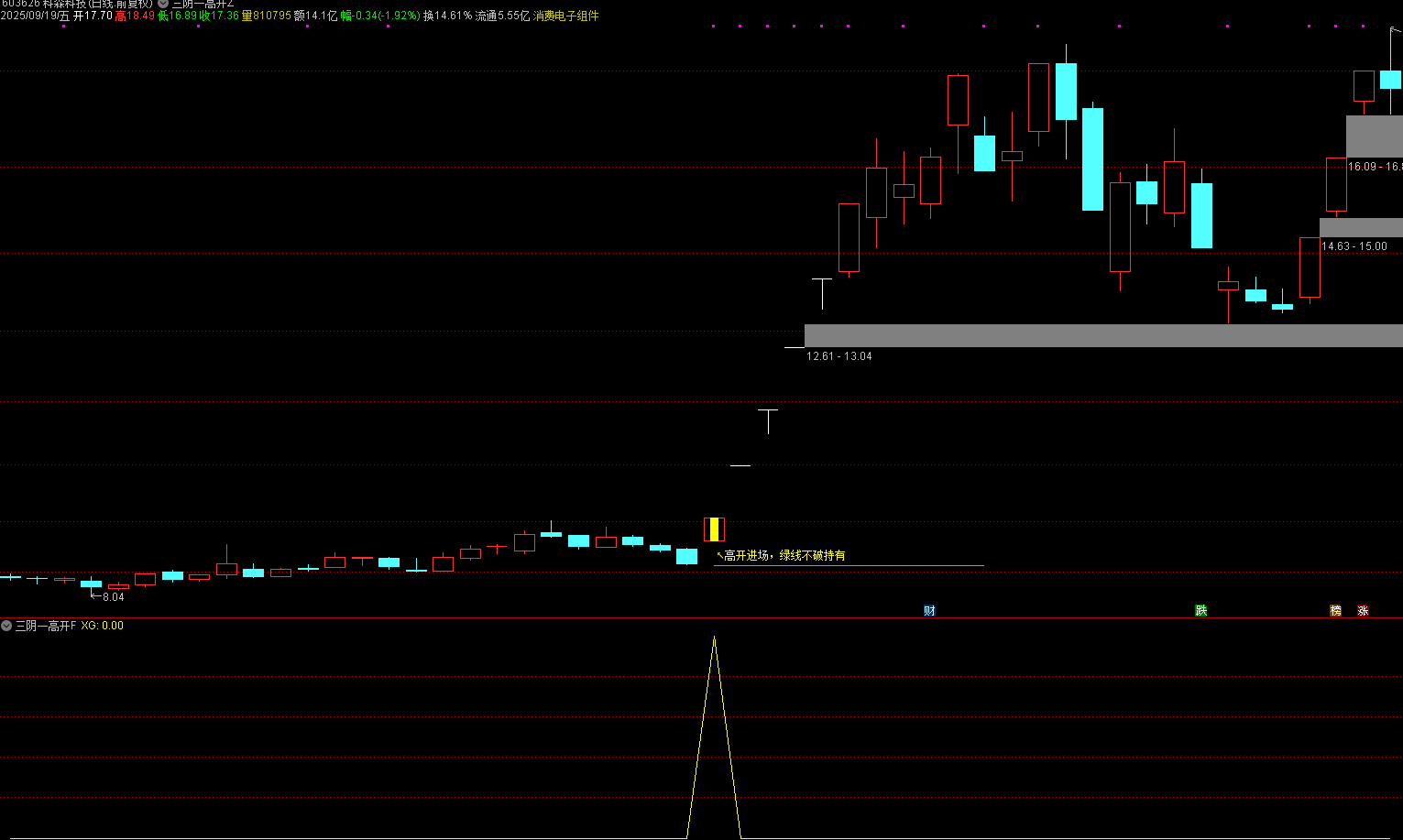 (通达信【三阴一高开】主副图选股 反转一剑天 ,识别主力拉升前的最后洗盘信号)