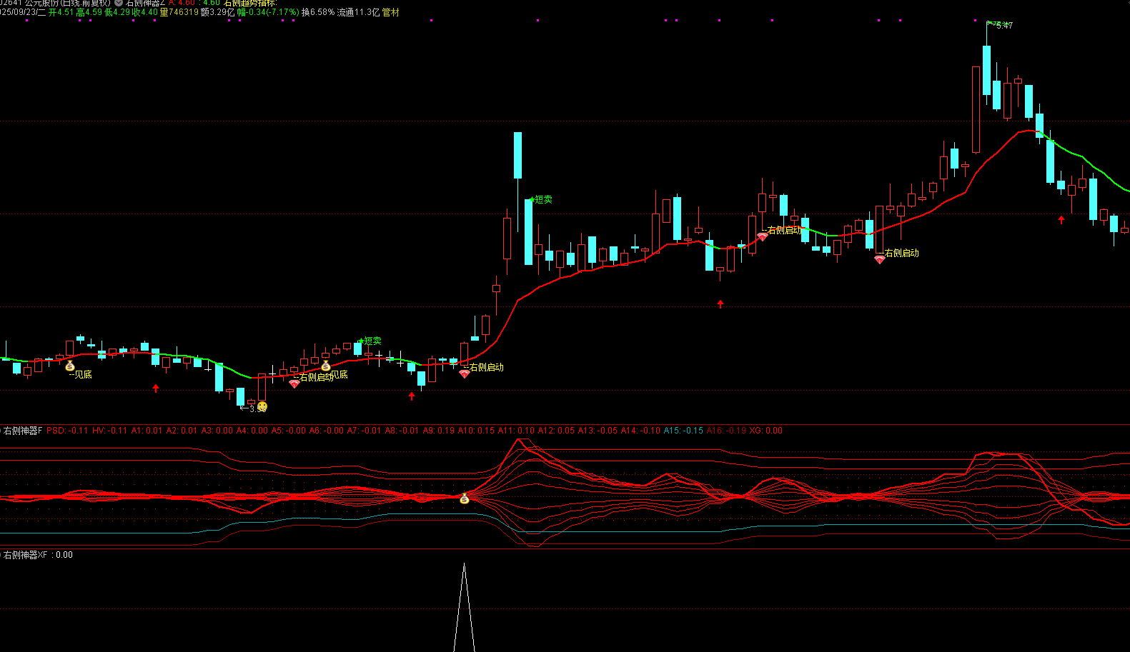 3.右侧启动成立,主图短卖信号是小波段减仓信号。