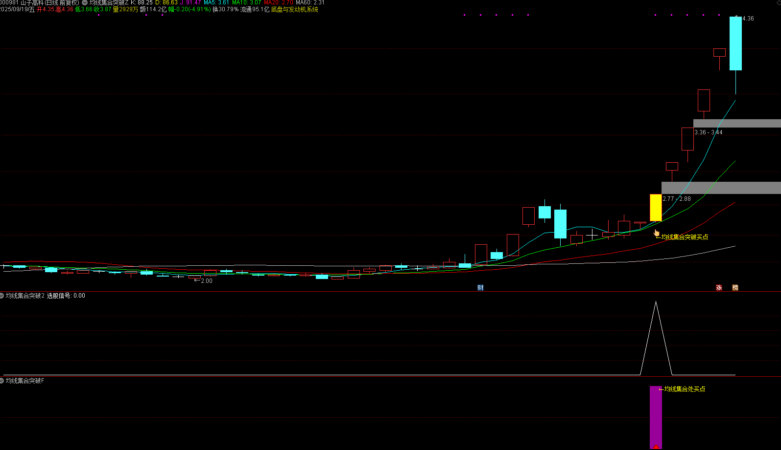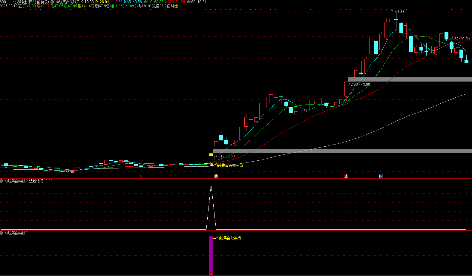 (通达信【均线集合突破】套装指标 均线集合突破+顶底背离+牛熊线穿越)