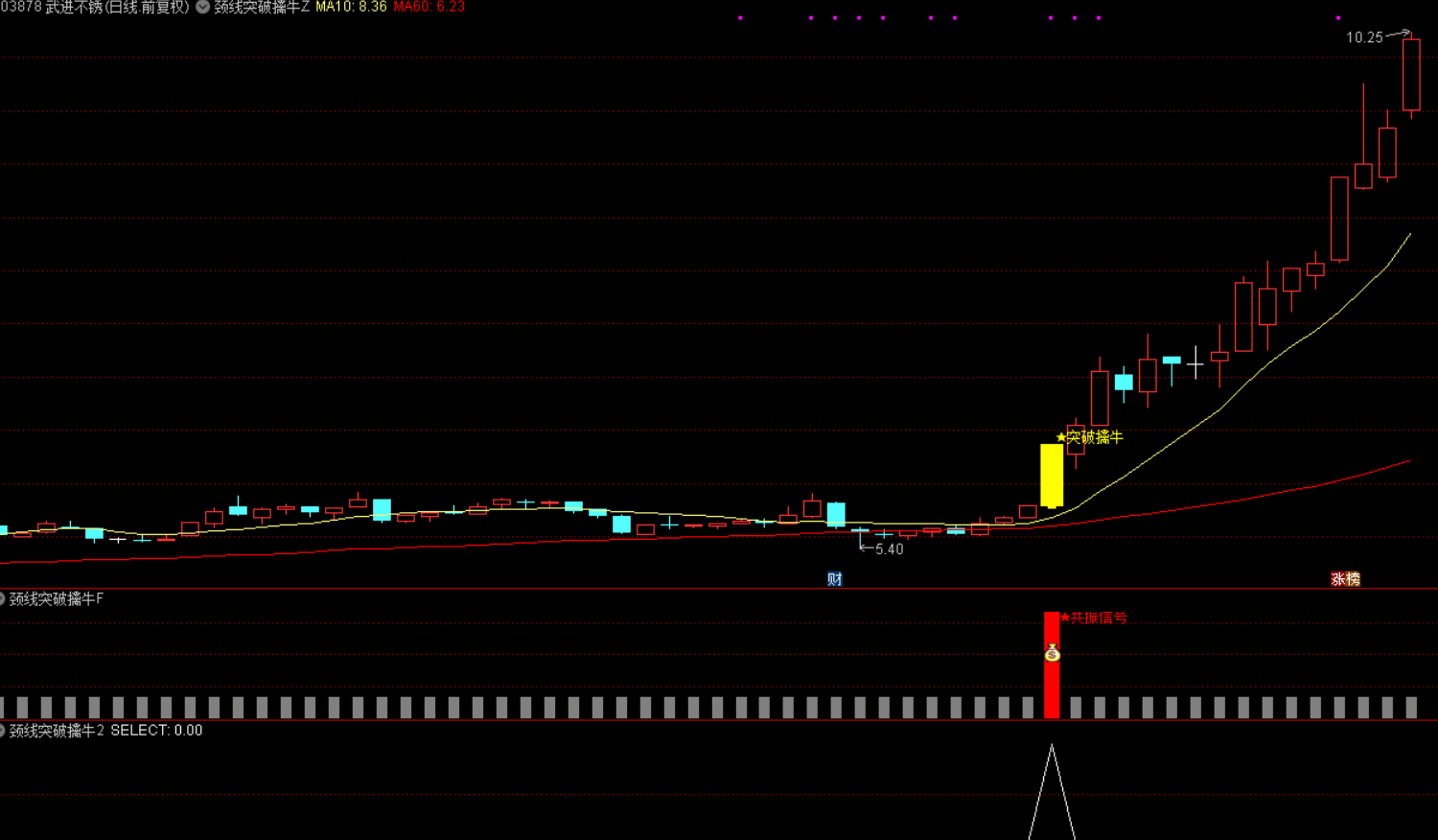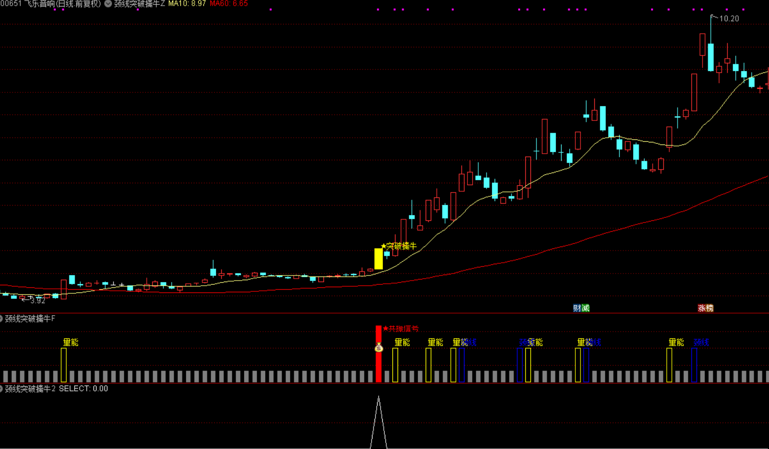 (通达信【颈线突破擒牛】1主2副1选股 量能偏离与颈线突破双条件触发选股信号 )