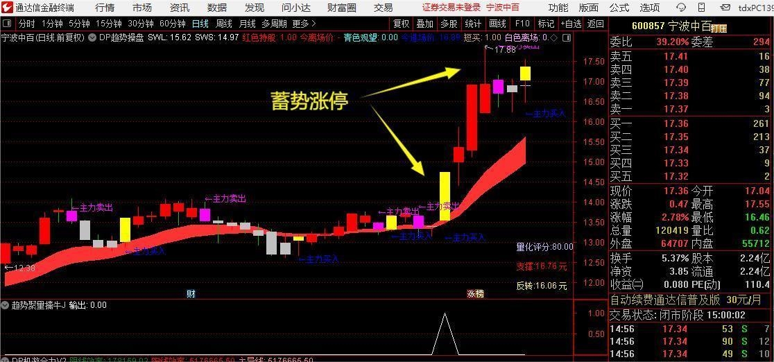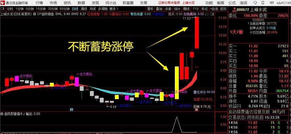 2.上车方式:触发信号当日或次日逢低进入。(可借助高抛低吸判断分时买入点,它是通达信平台免费使用指标)