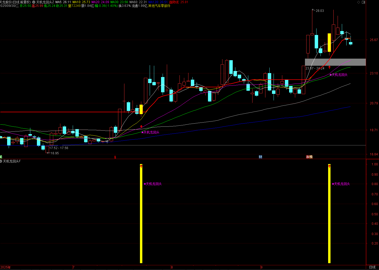 (通达信天机龙回头指标,牛市常见形态主副图/选股 参考使用 )