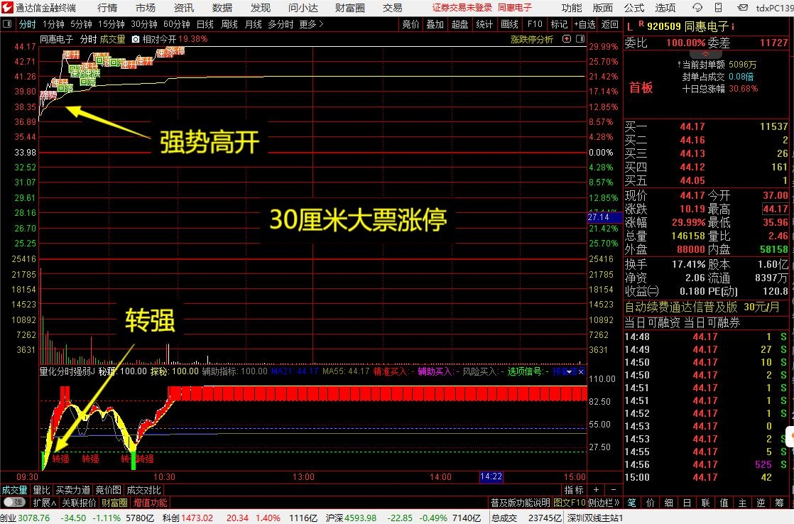 (4)案例4:分时超强选股,当日涨停,次日大涨7%