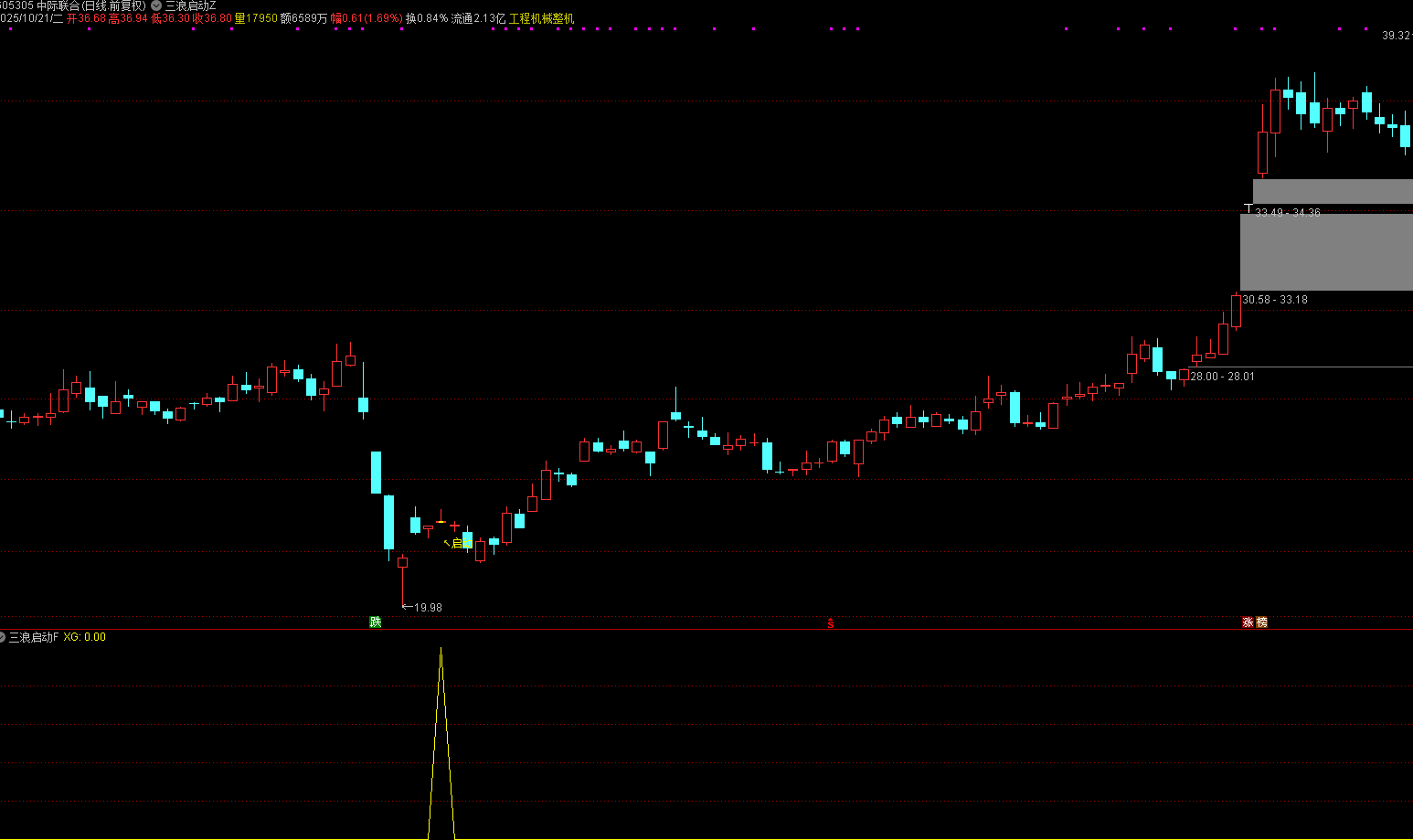 该指标专为识别一种独特的底部反转形态而设计:主力机构通过高开低走策略制造市场恐慌,进行洗盘操作,随后以连续小阳线的方式温和吸筹,最终形成突破信号。此指标能够精准捕捉“吸筹-洗盘-拉升”这一完整市场链条中的第三浪主升浪启动关键点。