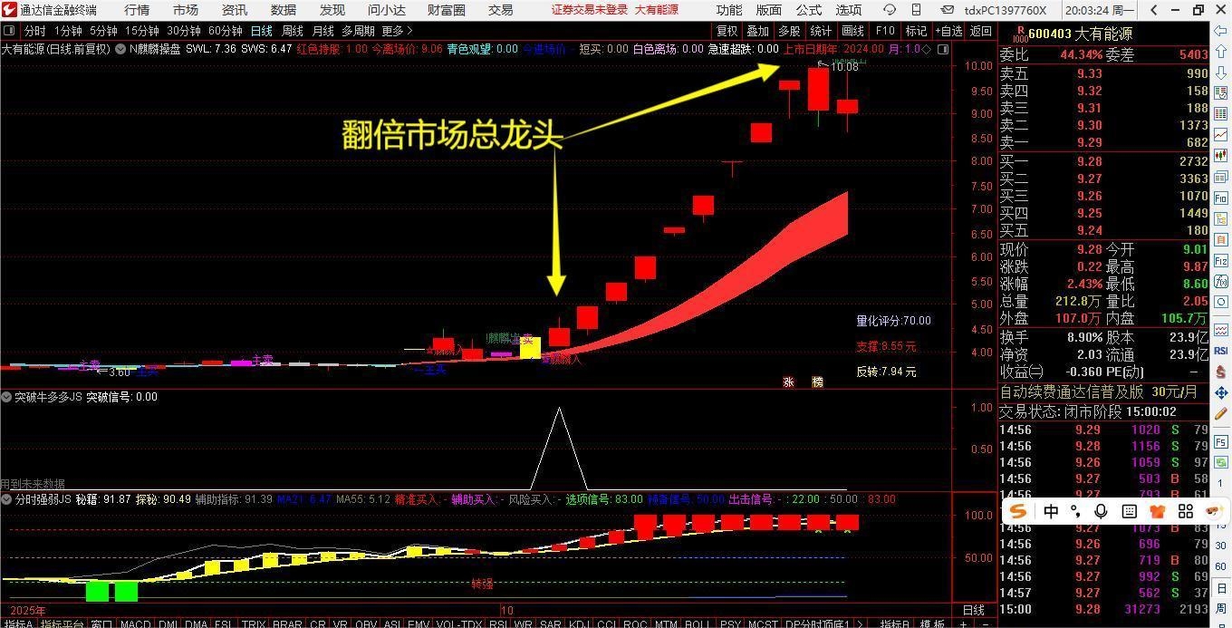 (通达信【突破牛多多策略】龙妖选股器【量价齐升,突破压力,强势起飞,1选+1主图+2副图】)