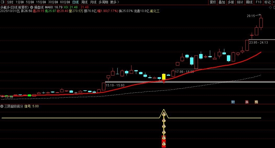 1.这个模型其实就是一个三阴超级底分型结构,加上它在操盘线上企稳,资金监控的数据良好,没有大额流出。所以它成功的概率就大。我们只能说概率,没有绝对的事情。