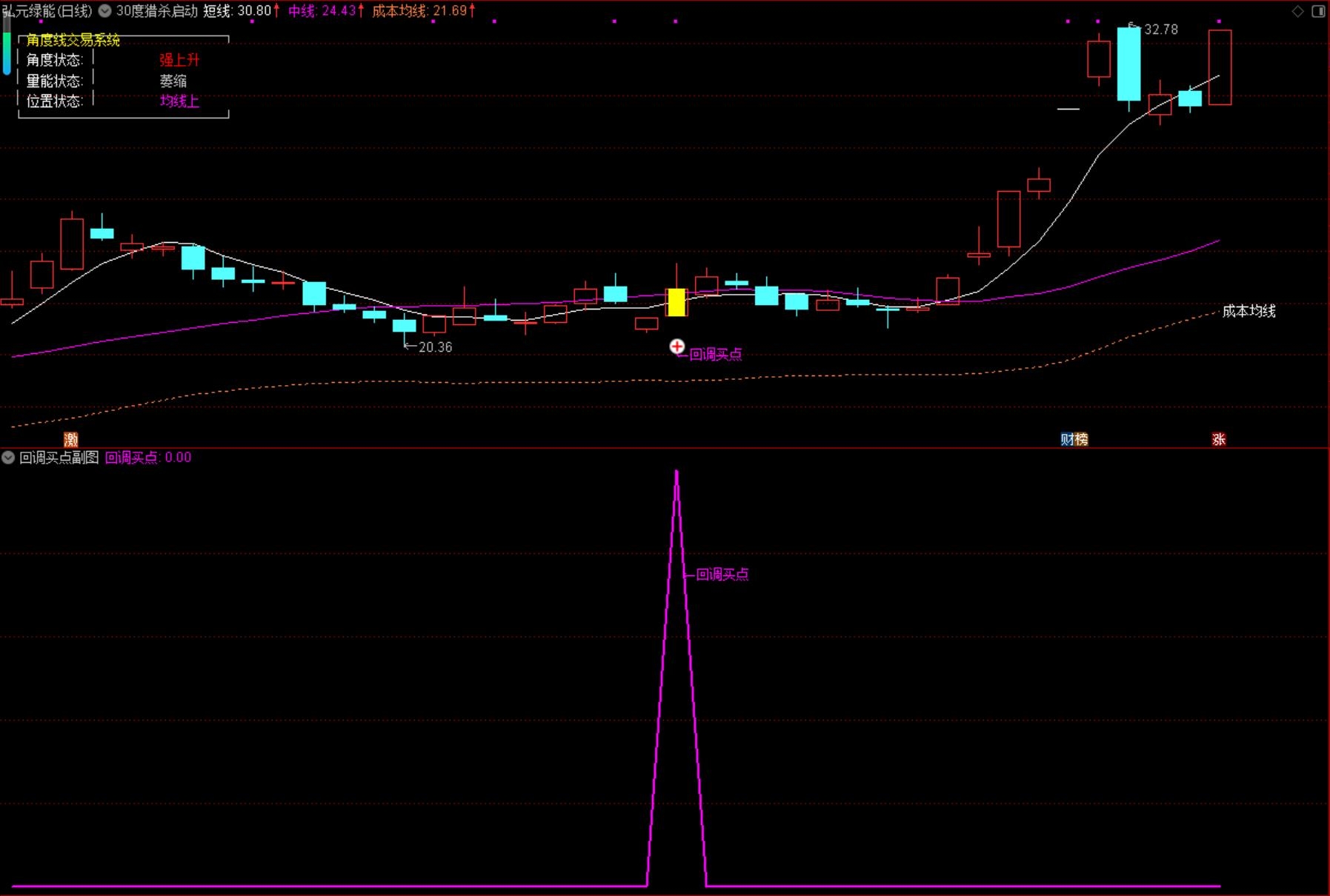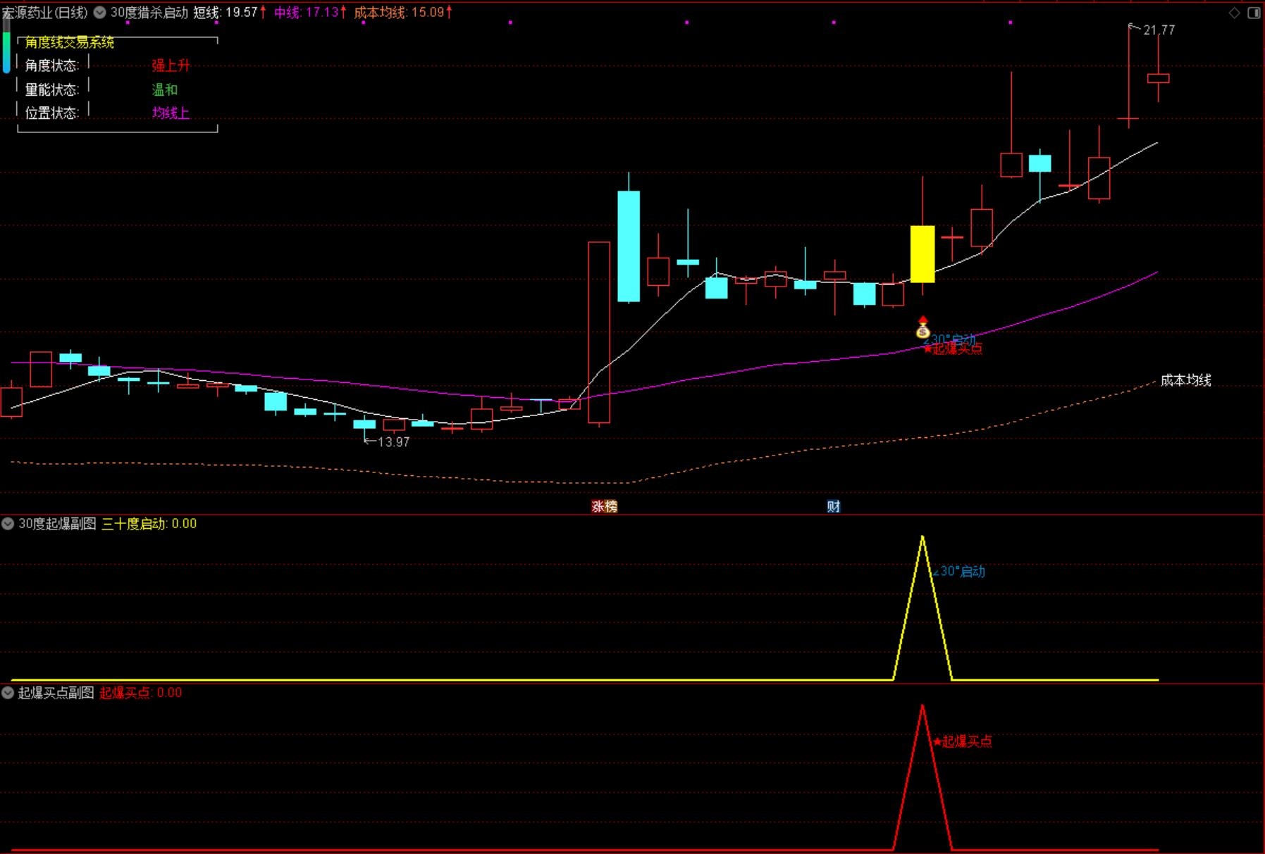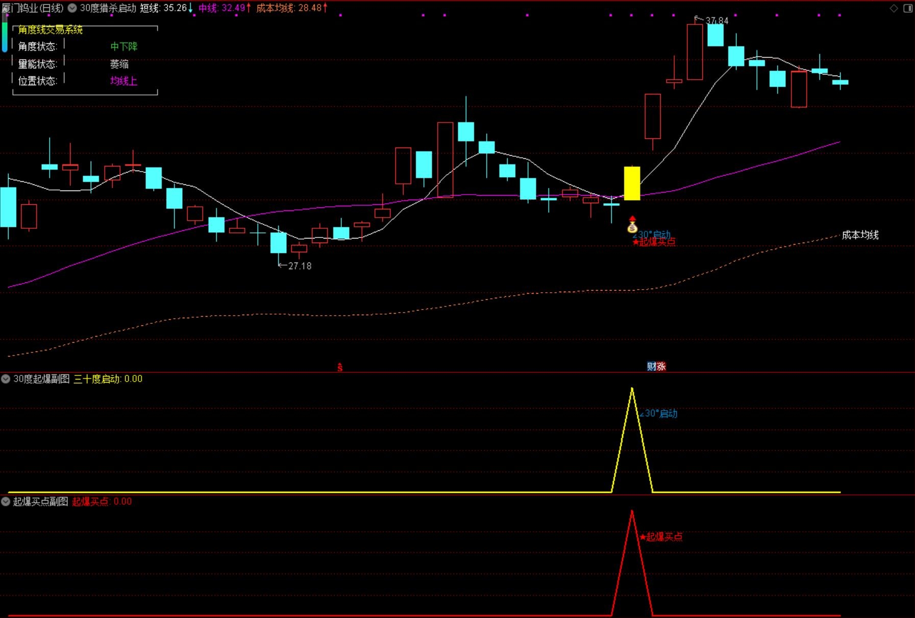(通达信【30度猎杀启动】主副图选股指标,回调+启动+起爆三信号模式,源码无未来函数手机电脑通达信通用)
