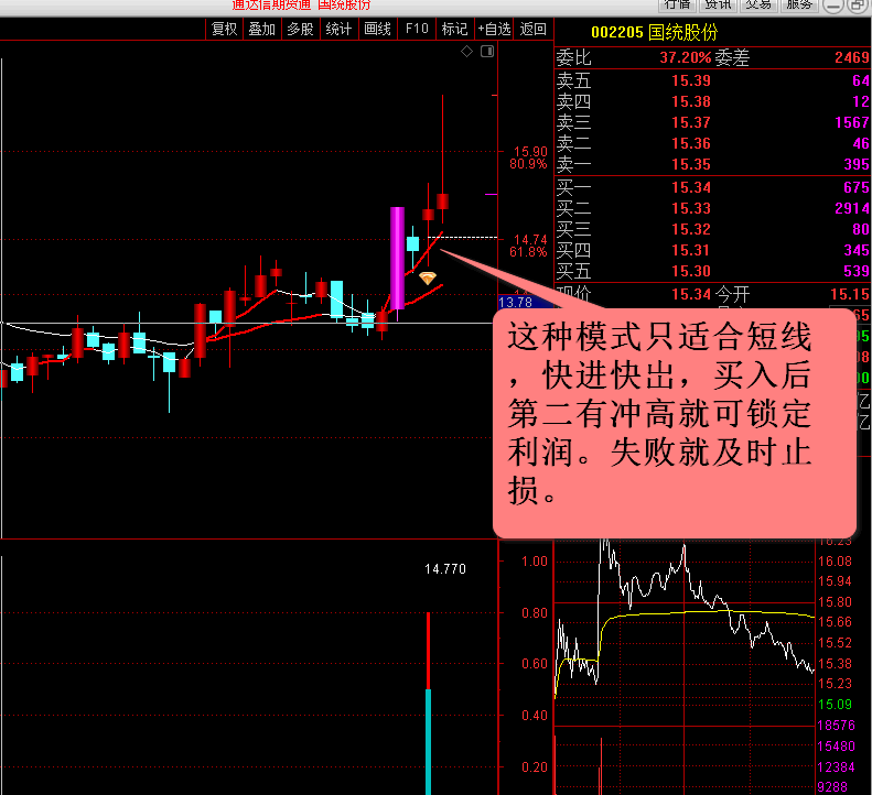 (一板反攻:短线指标,主要是扑捉反包后,能再次上冲的个股。)