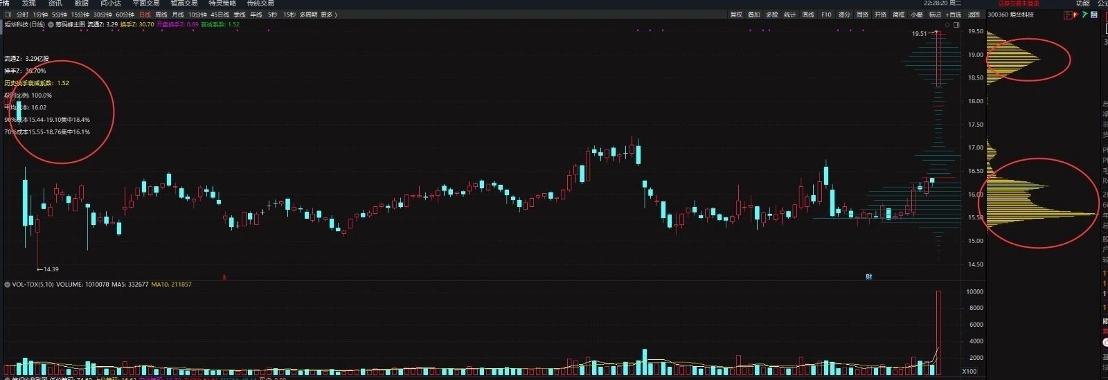 (通达信【筹码峰】主图指标 细致显示 覆盖了流通股、换手率、成本分布核心数据)