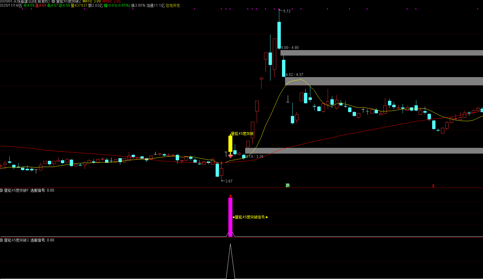 本指标是一款短期趋势加速型共振指标,其核心逻辑是通过“价格趋势陡峭度(45度角)+资金动能(MACD金叉)+星能支撑(放量)+均线结构(多头排列+突破)”五大维度的同步验证,筛选出“星价势共振、短期上涨确定性高”的个股。