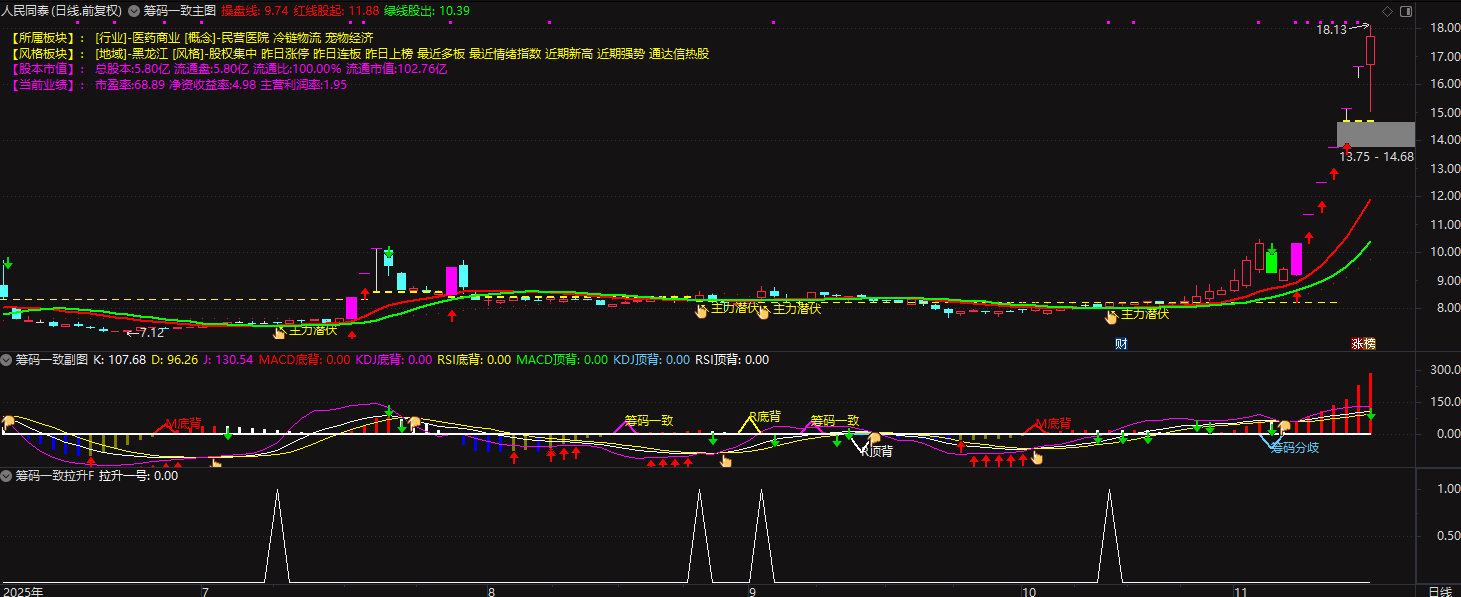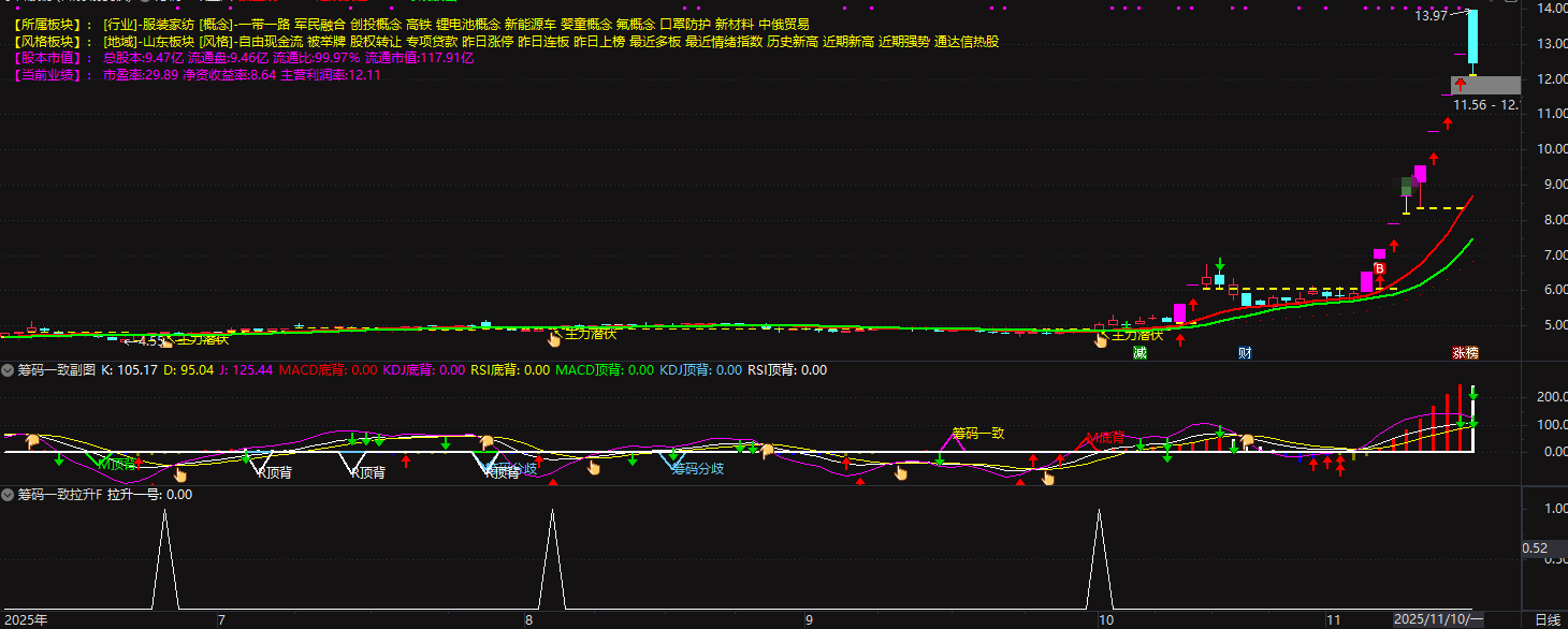 (通达信筹码一致指标套装,该综合性股票指标整合了板块、股本、业绩、K 线、成交量、趋势及主力资金等多维)