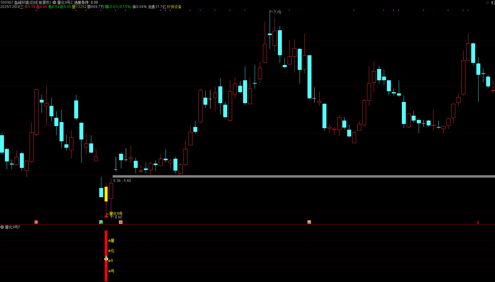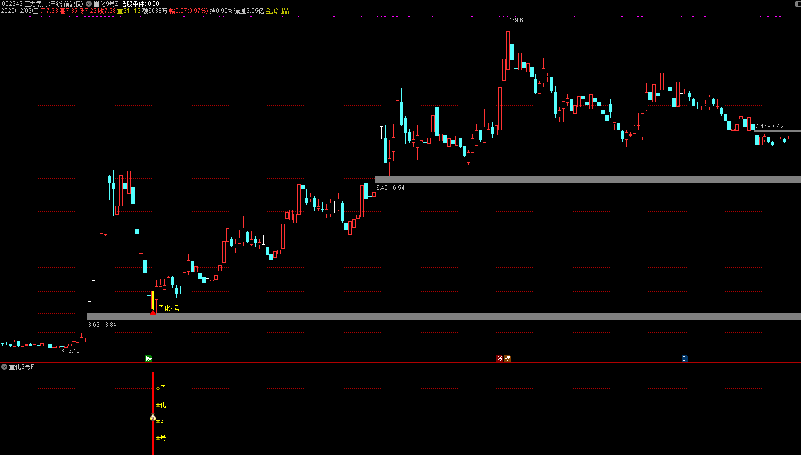 量化9号指标短线使用,今买明卖,通过对2022-2025年回测发现,表现还是不错的,以次日最高卖红盘成功率达到了97%,以次日收盘卖红盘成功率也有79%,以持仓5日后收盘价离场胜率为82%(回测数据代表过往行情,不做未来收益保证,仅供参考!)。