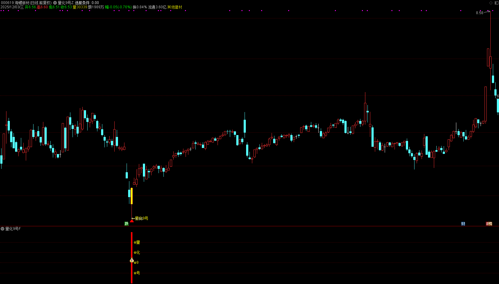 量化9号指标包含 1主图1副图 1选股,次日趋势的黄金坑,源码无未来函数,通达信指标源码,通达信手机电脑通达信通用,信号仅供参考。