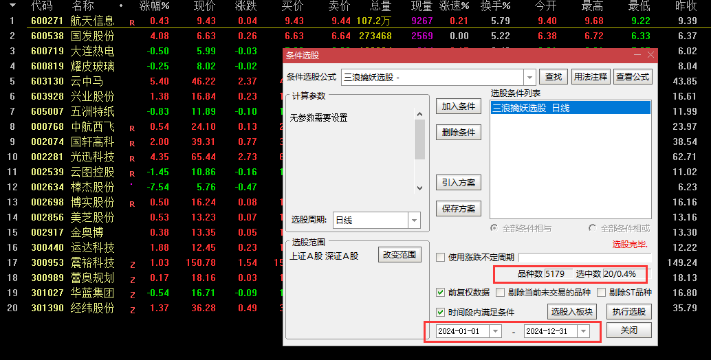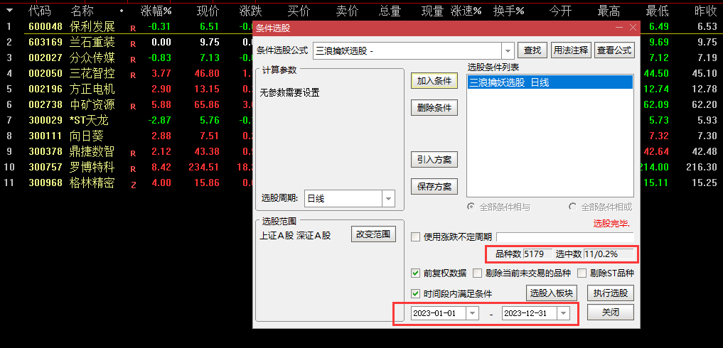 (通达信〖三浪擒妖〗副图选股指标,建仓洗盘后捕捉三浪主升起爆点,信号少胜率高!源码)