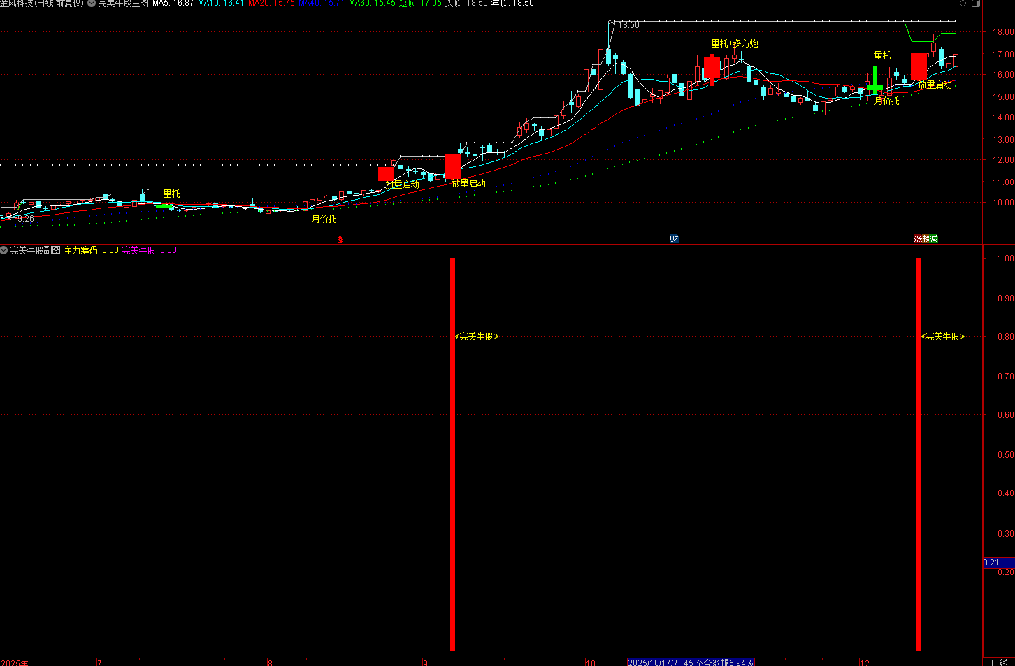 本指标整合「强势量价突破」与「低位蓄势启动」双维度逻辑,既保留经典技术形态(量托、多方炮、出水芙蓉、老鸭头等)的可视化标注,又新增 “精准牛股启动” 专属图标信号,通过多条件交叉验证,辅助投资者识别兼具 “强势基因 + 稳健启动特征” 的牛股,适用于 A 股短线 / 波段交易分析。