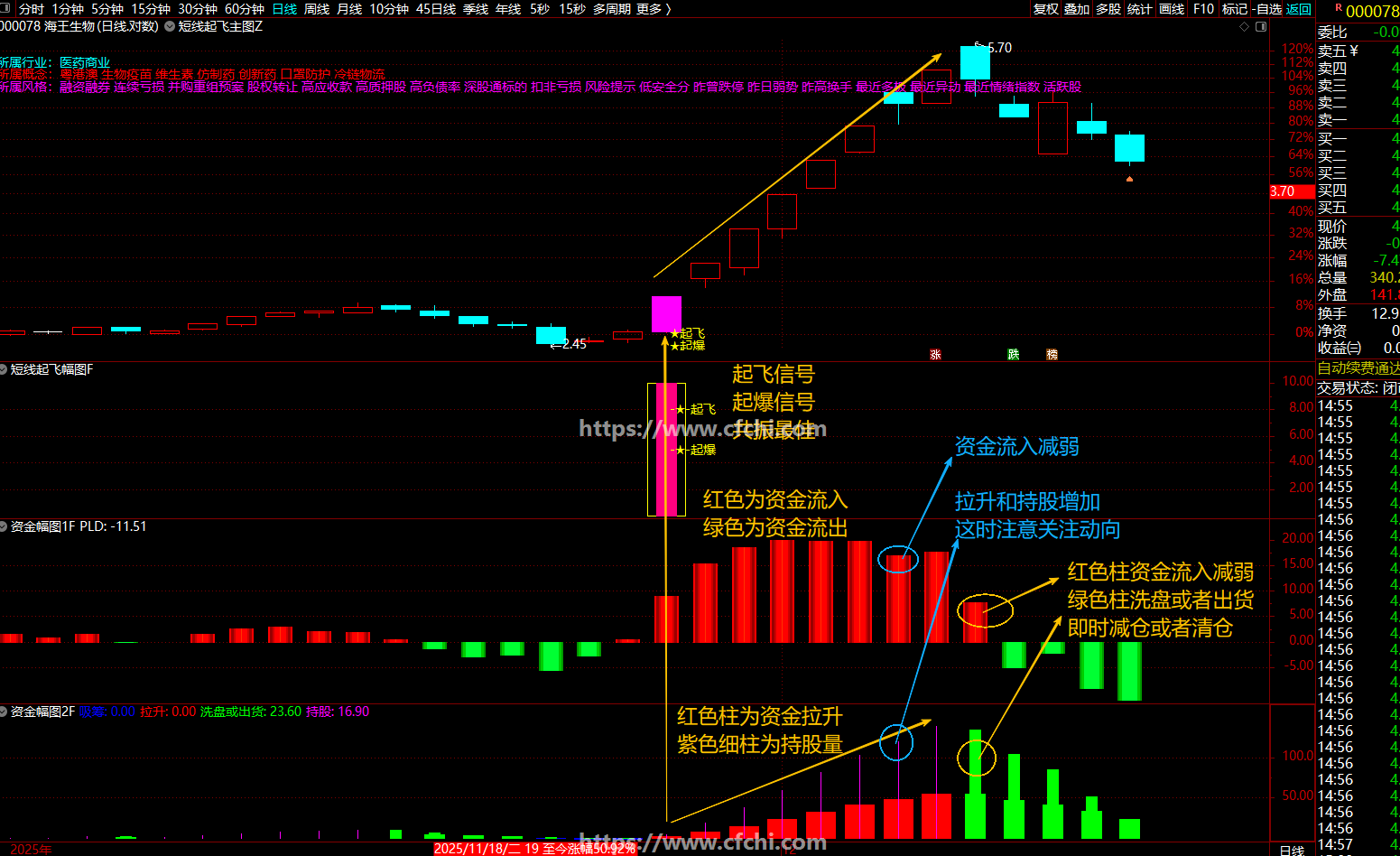 5、发出信号后、配合两个资金幅图运用、结合自己经验最终决策