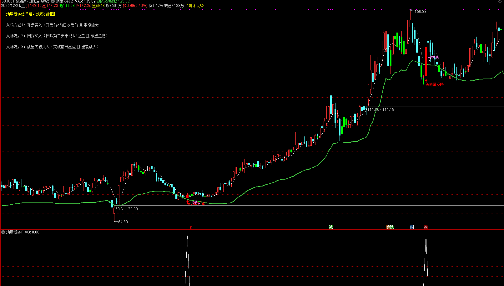 地量反转抄底指标包含 1主图 1副图和1选股,精确的缩至地量之后的反转,无未来函数,手机电脑通达信通用,信号仅供参考。